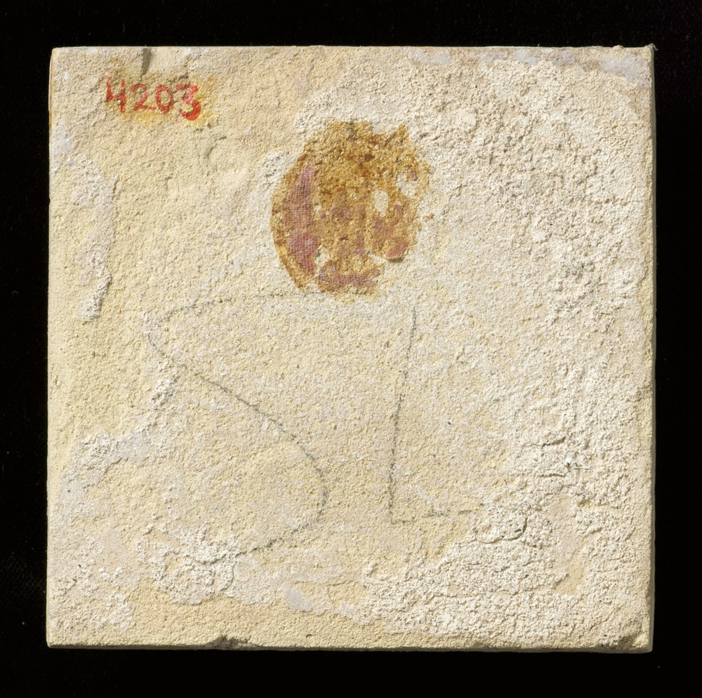 tegel van aardewerk in tinglazuur, voorstellende: la...