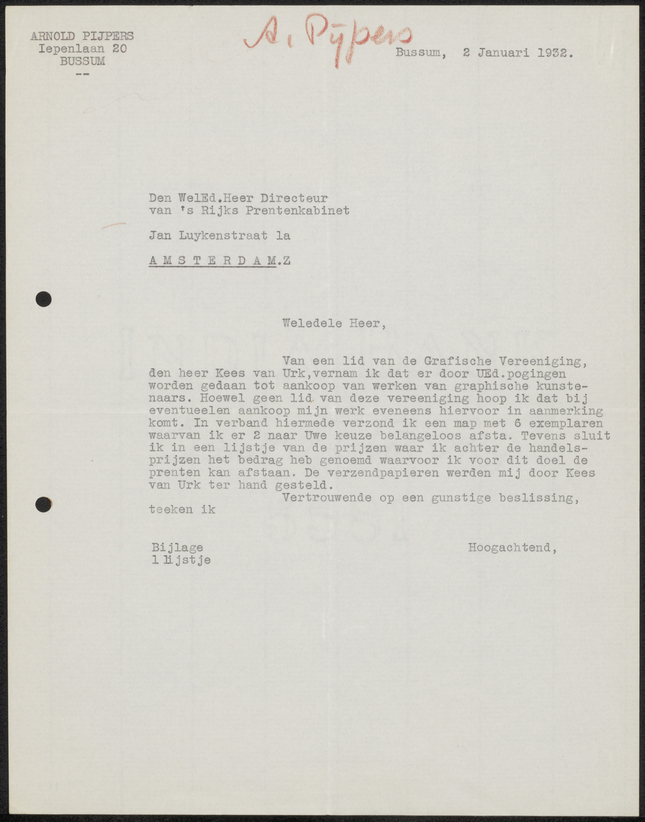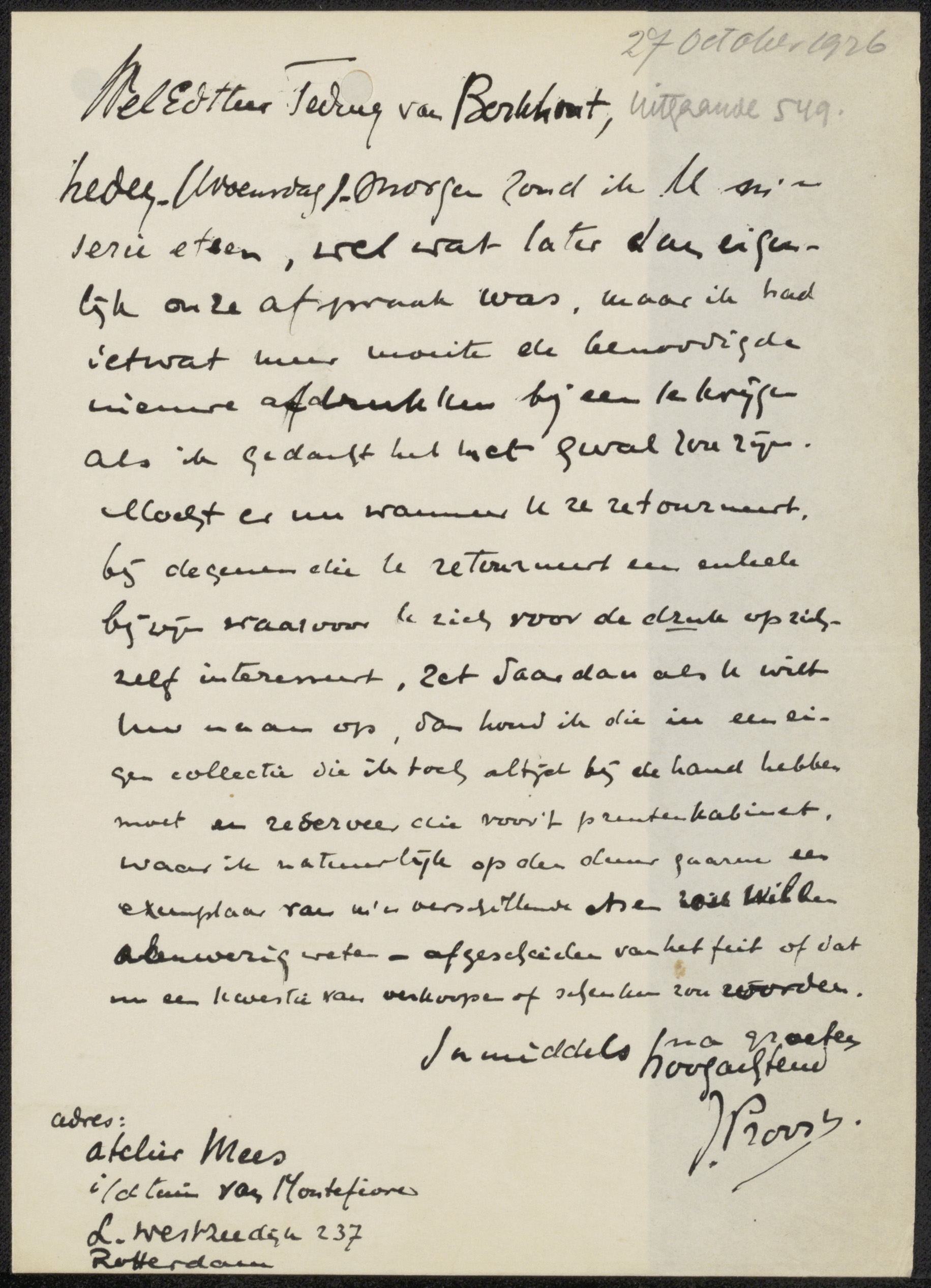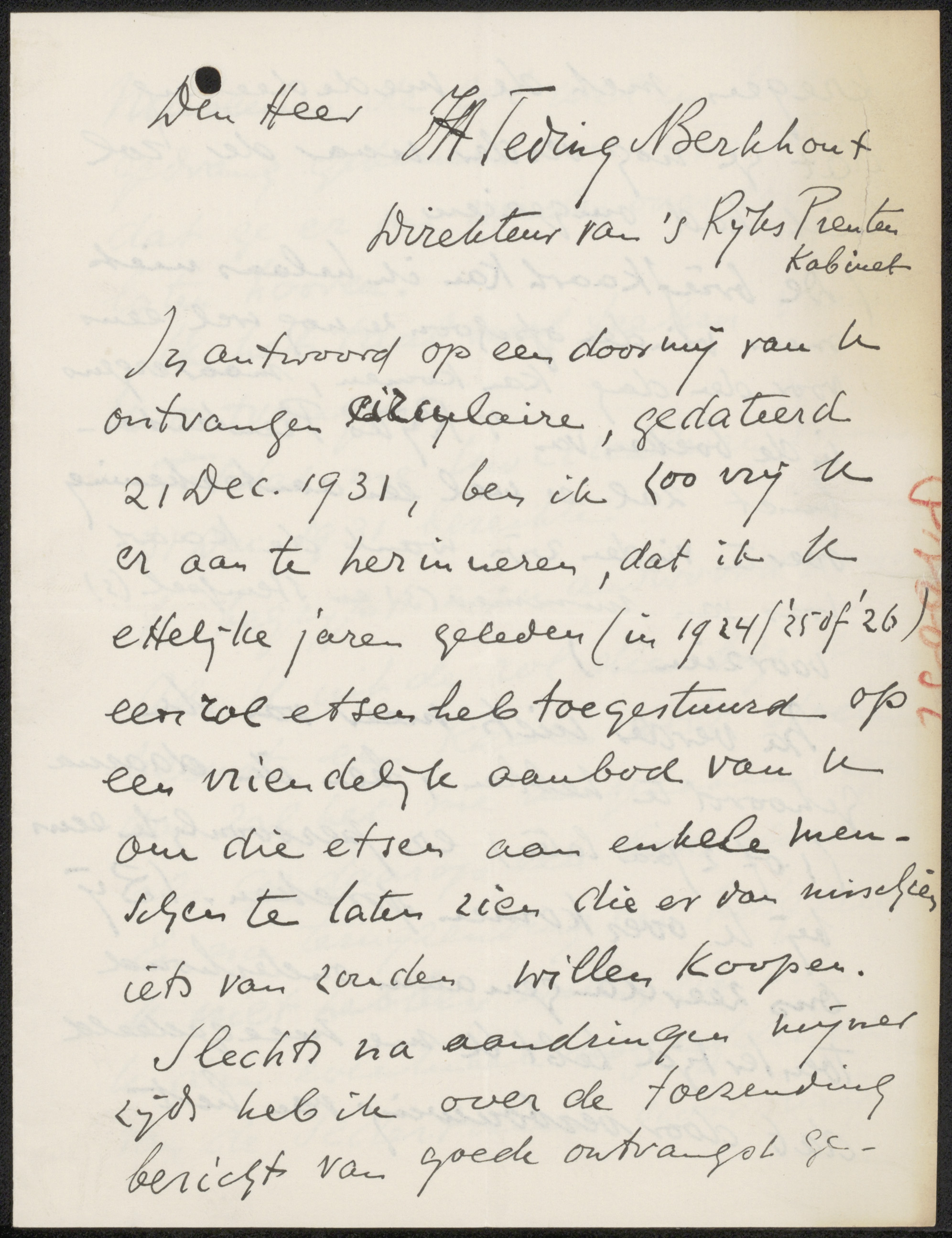 Brief aan jonkheer Hendrik Teding van Berkhout (1879...