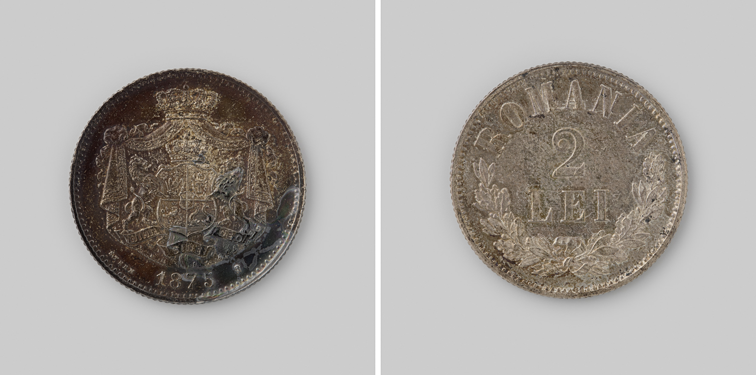 2 lei uit Roemenië van vorst Carol I, 1875