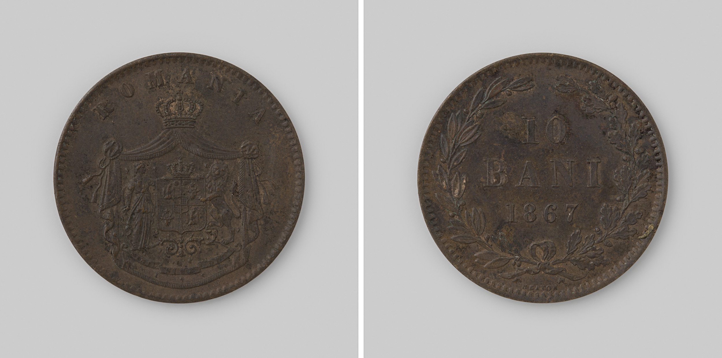 10 bani uit Roemenië van vorst Carol I,1867
