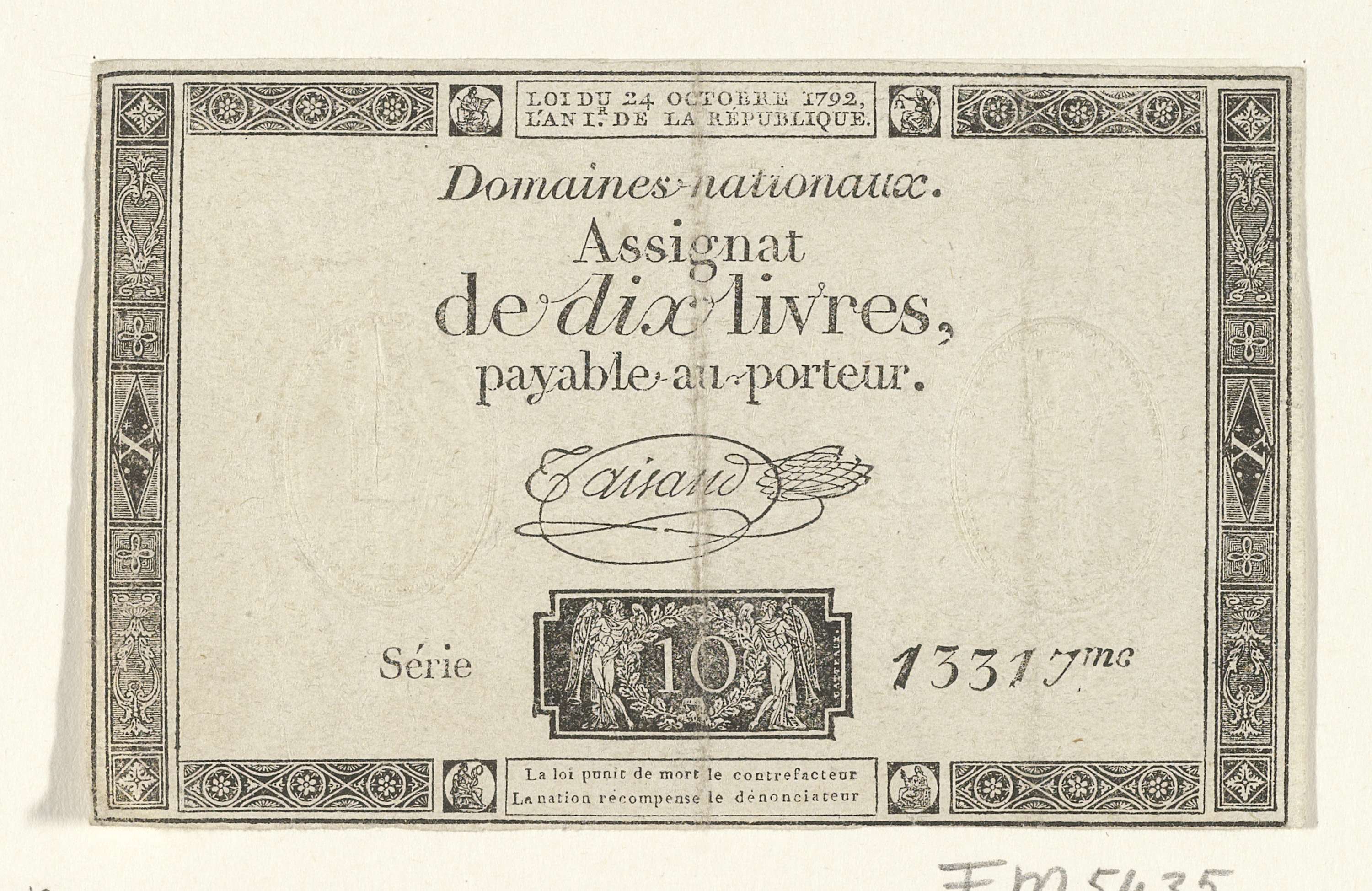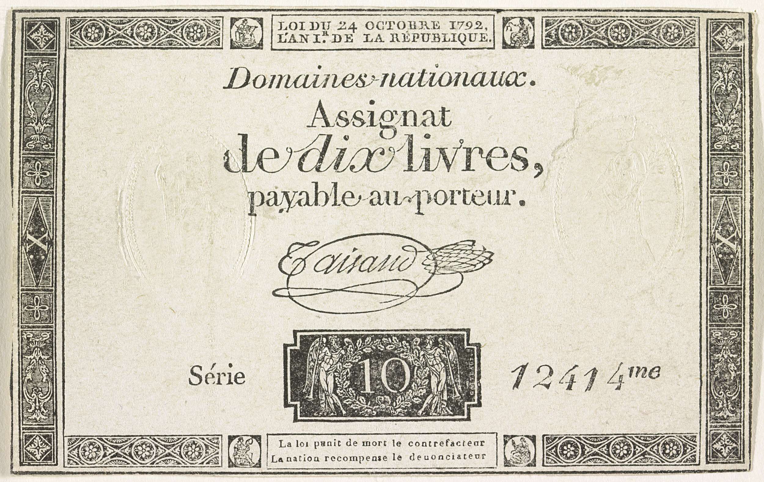 Assignaat van 10 livres, 1792