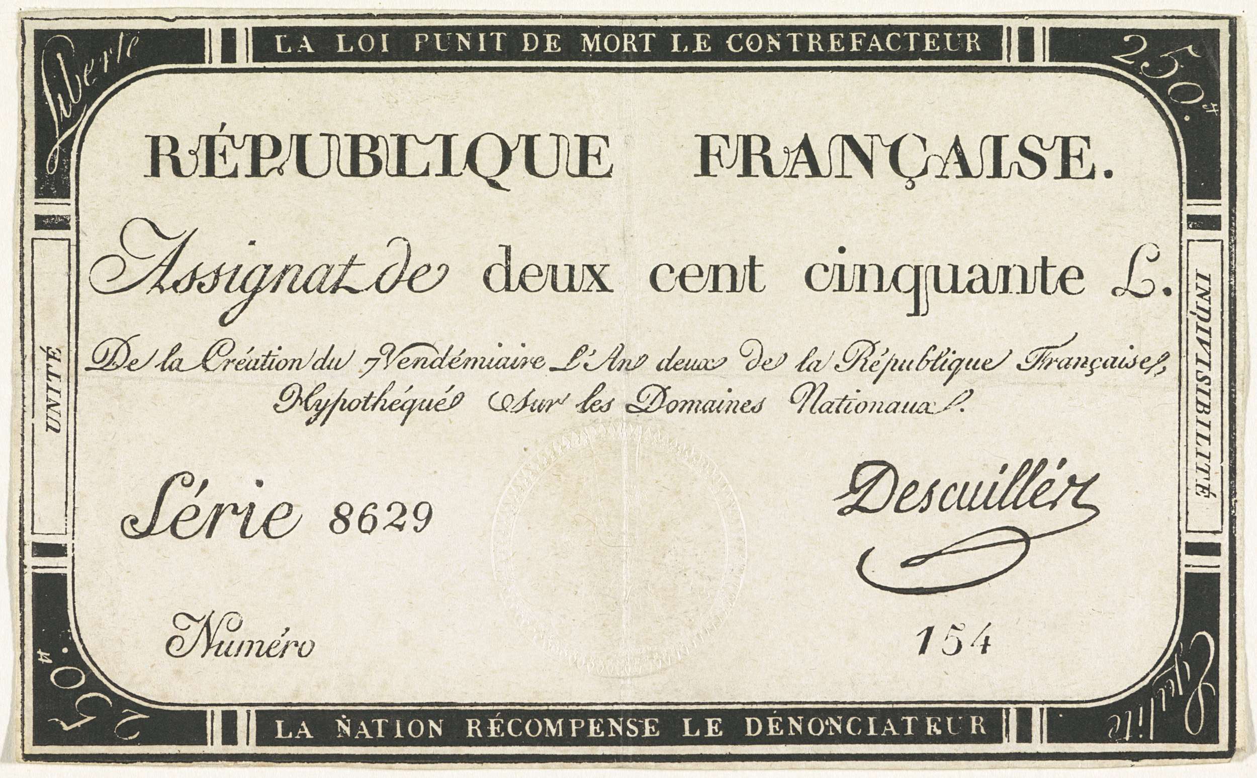Assignaat van 250 livres, 1793-1794