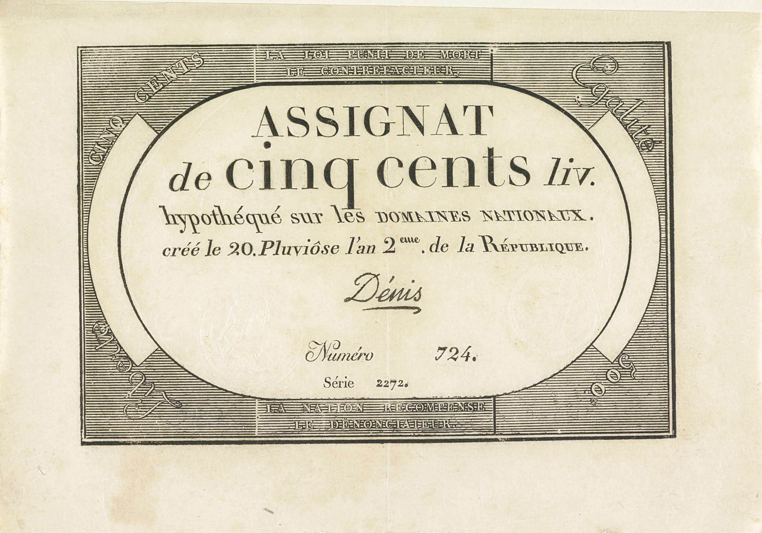 Assignaat van 500 livres, 1793-1794