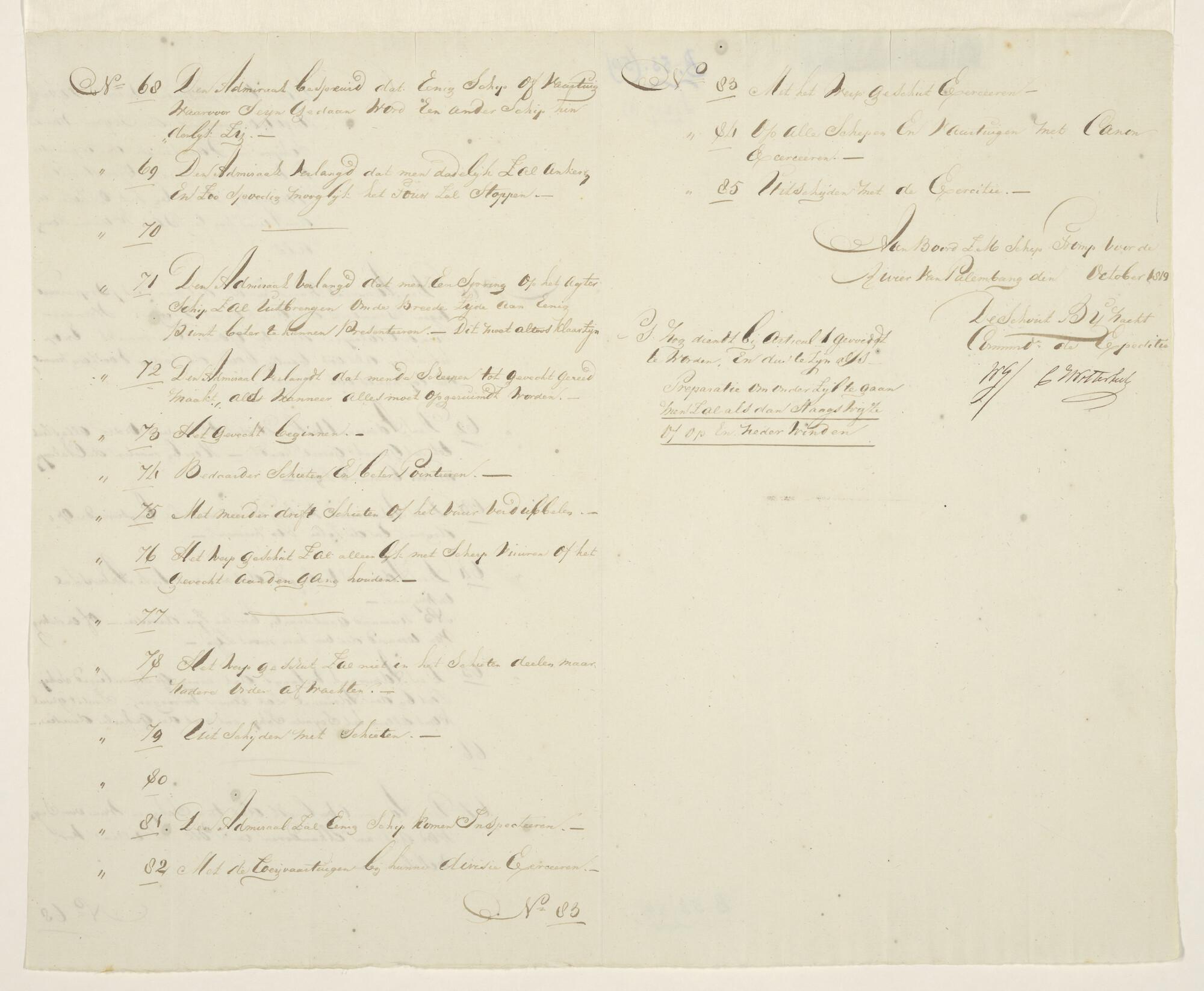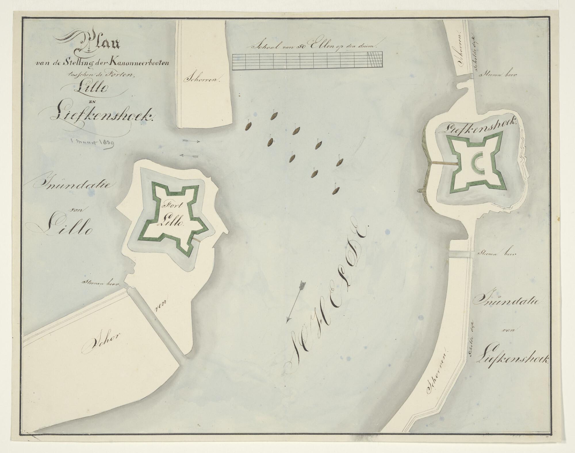 Manuscriptkaart met de positie van de kanonneerboten...