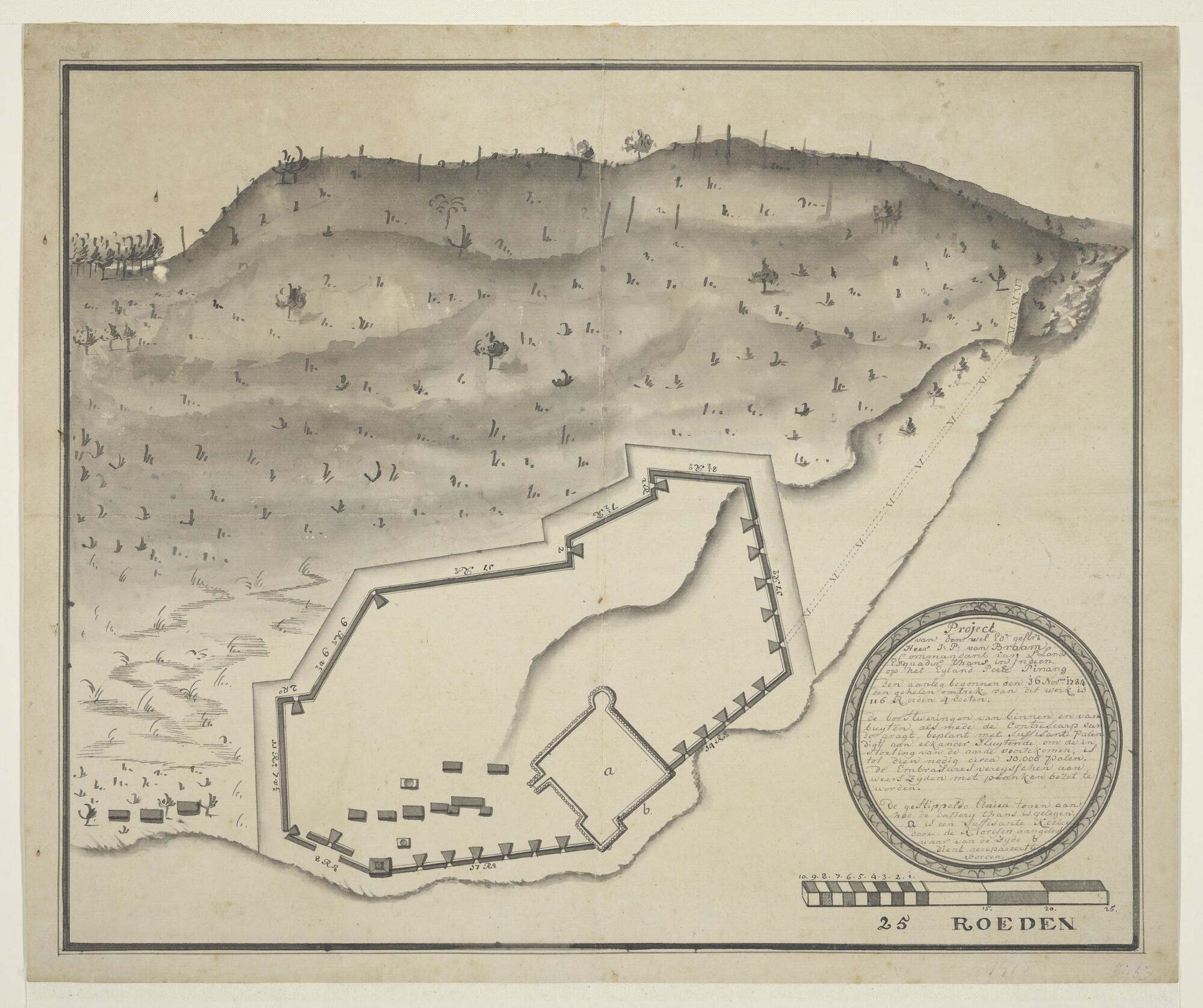 Manuscriptkaart met plan voor de aanleg van versterk...