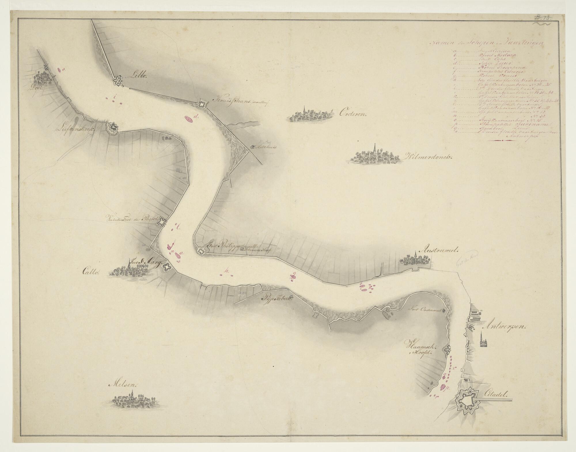 Manuscriptkaart van de Schelde vanaf Doel tot aan de...