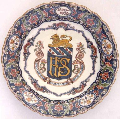 Wandbord van aardewerk uit Workum met het logo van d...