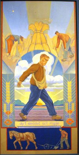 Olieverfschilderij met als voorstelling een zaaiende...
