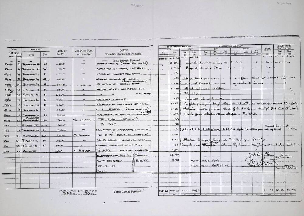 Kopie Logboek Flt/Lt Peter E. Brett 1944-45 ( 2 vel)