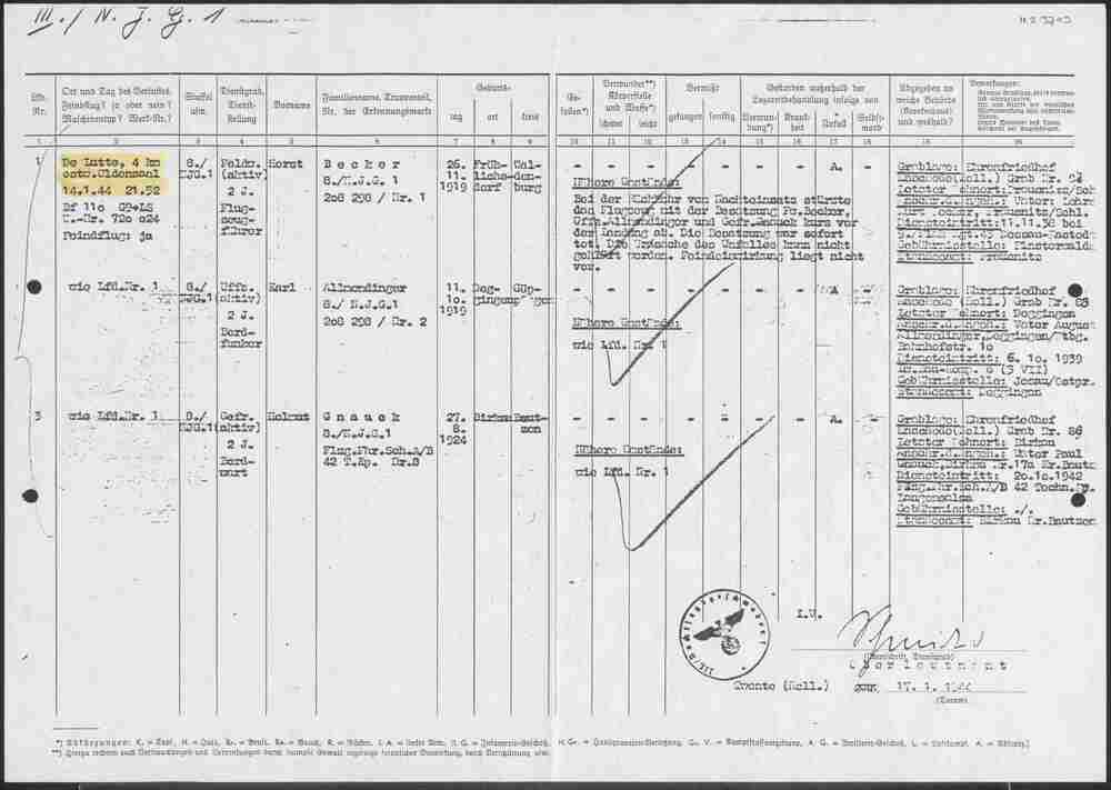 Namentliche Verlustmeldung 14 januari 1944.