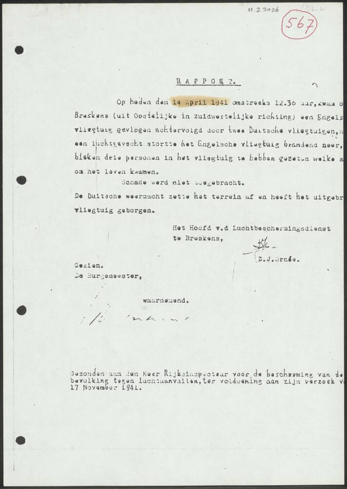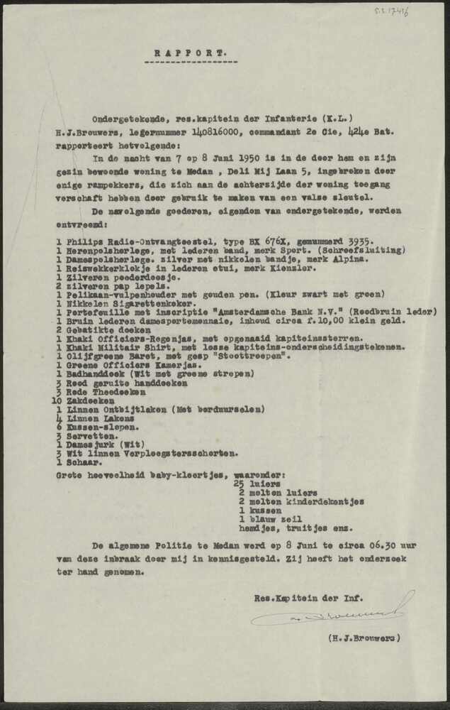 Rapport over inbraak bij kapitein H.J. Brouwers in n...
