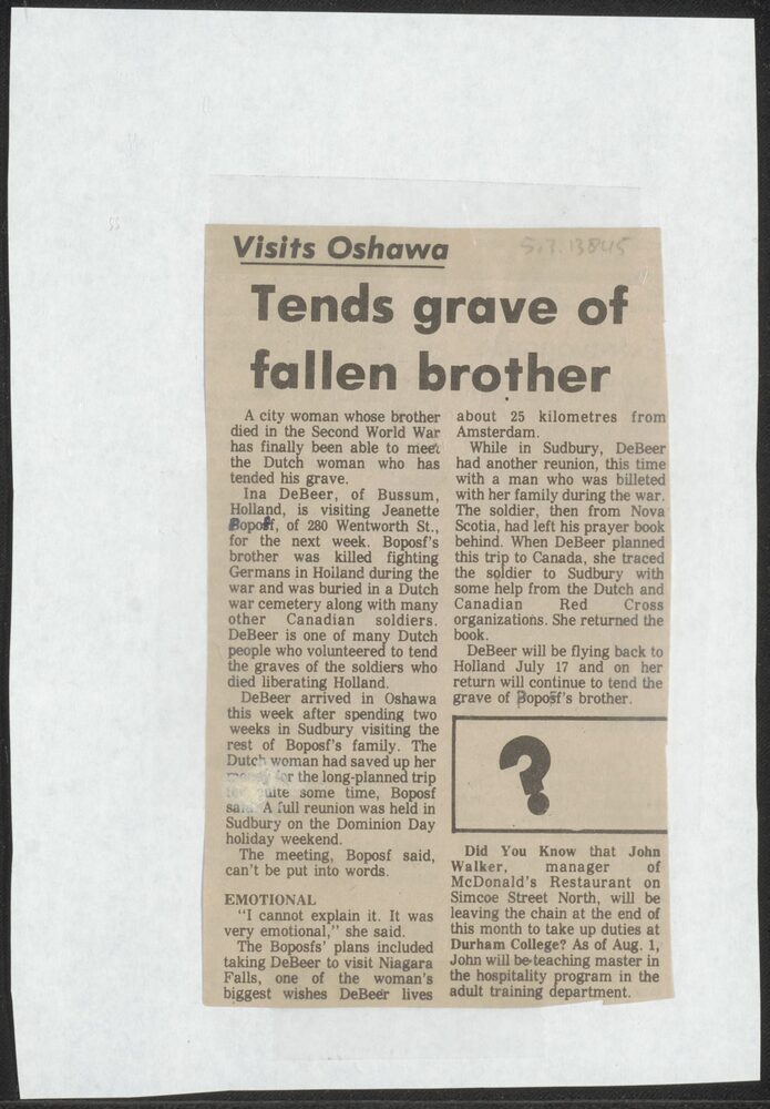 Peter Maulé (South Saskatchewan Regiment) met Gerrie...