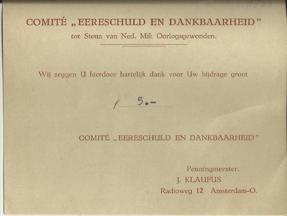 Ontvangstbewijs van toetreden als donateur voor vijf...