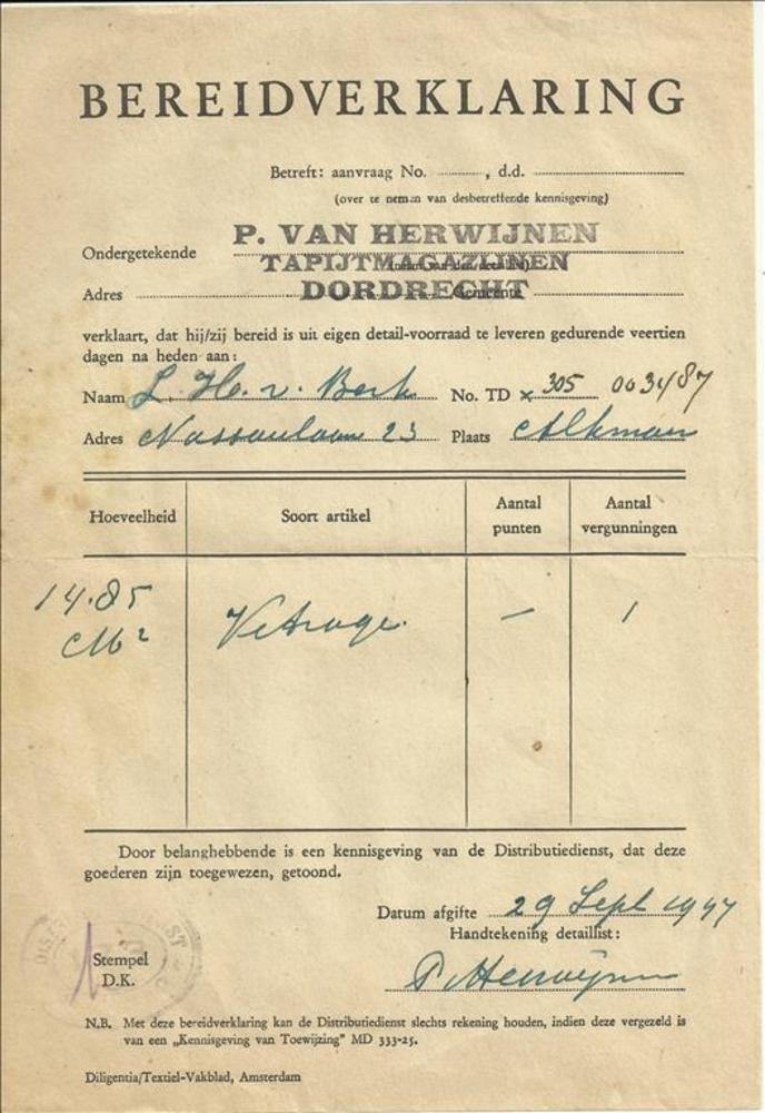 Distributiestamkaart op naam van Derksen