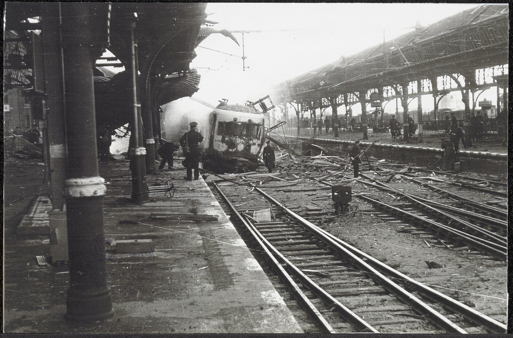Foto van het interieur van de verwoeste Sint Laurens...