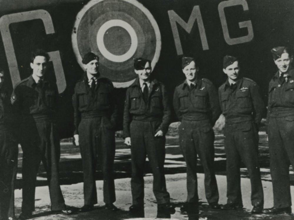 Foto van zeven mannen in R.A.F. uniform voor romp Br...