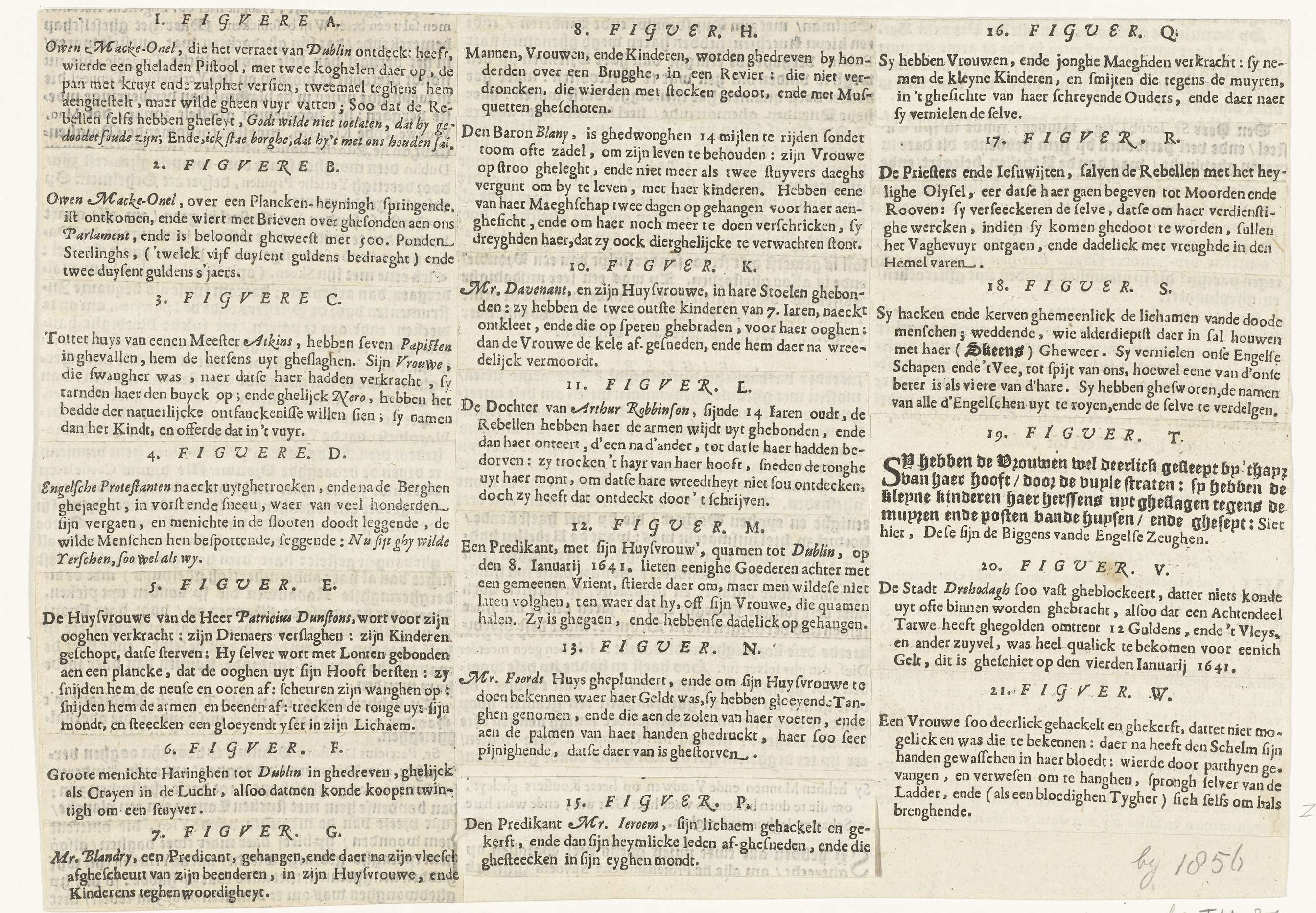 Teksten bij de prent van de wreedheden jegens de Ier...