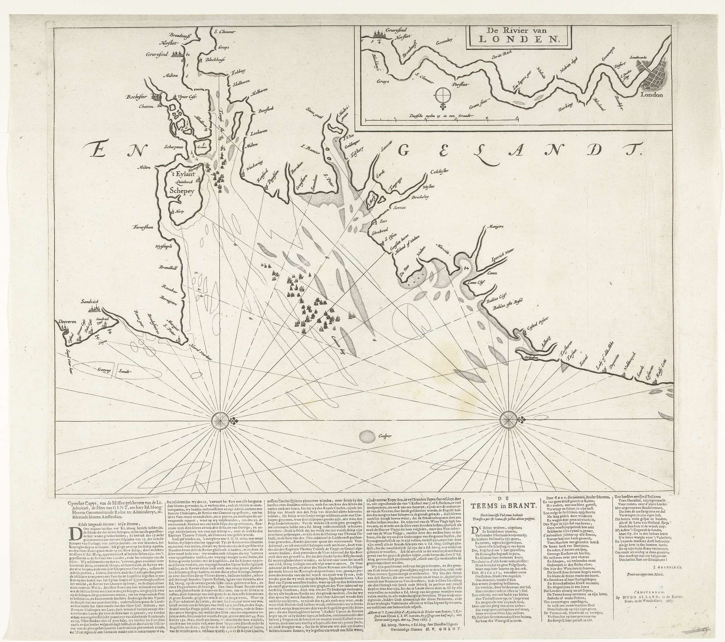 Kaart van monding van de Theems met de Tocht naar Ch...
