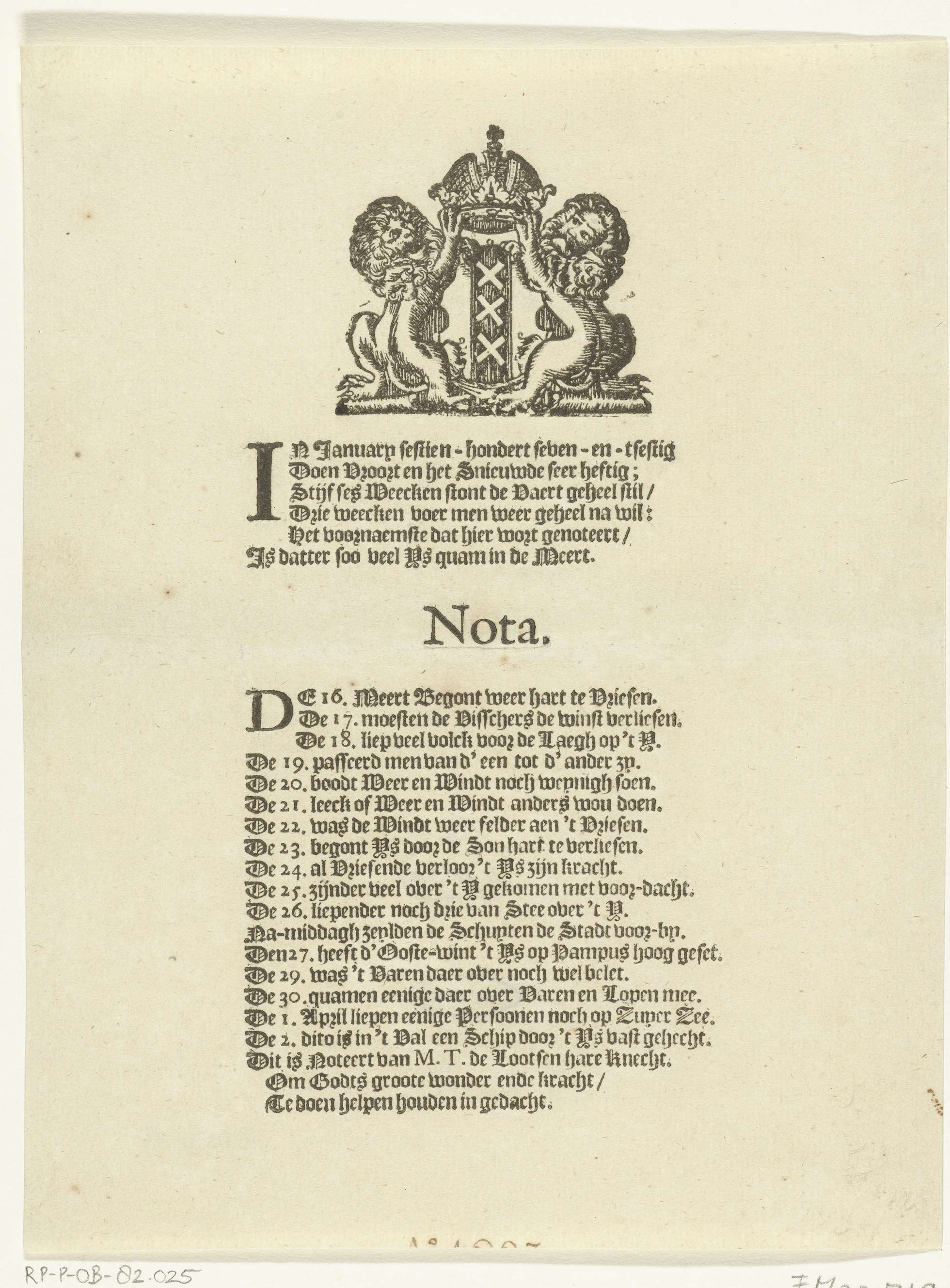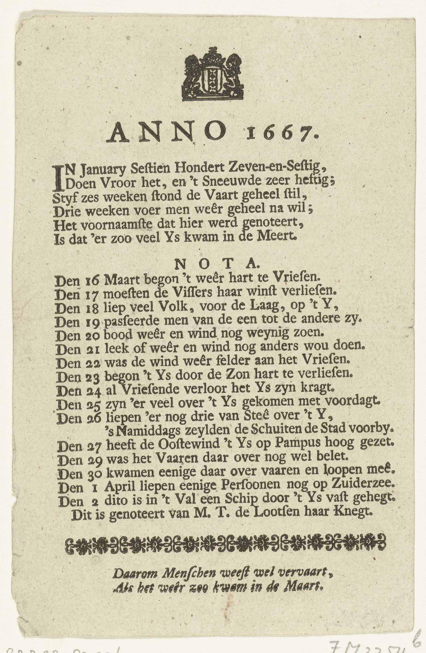 Vers over de strenge vorst in Amsterdam van maart 1667