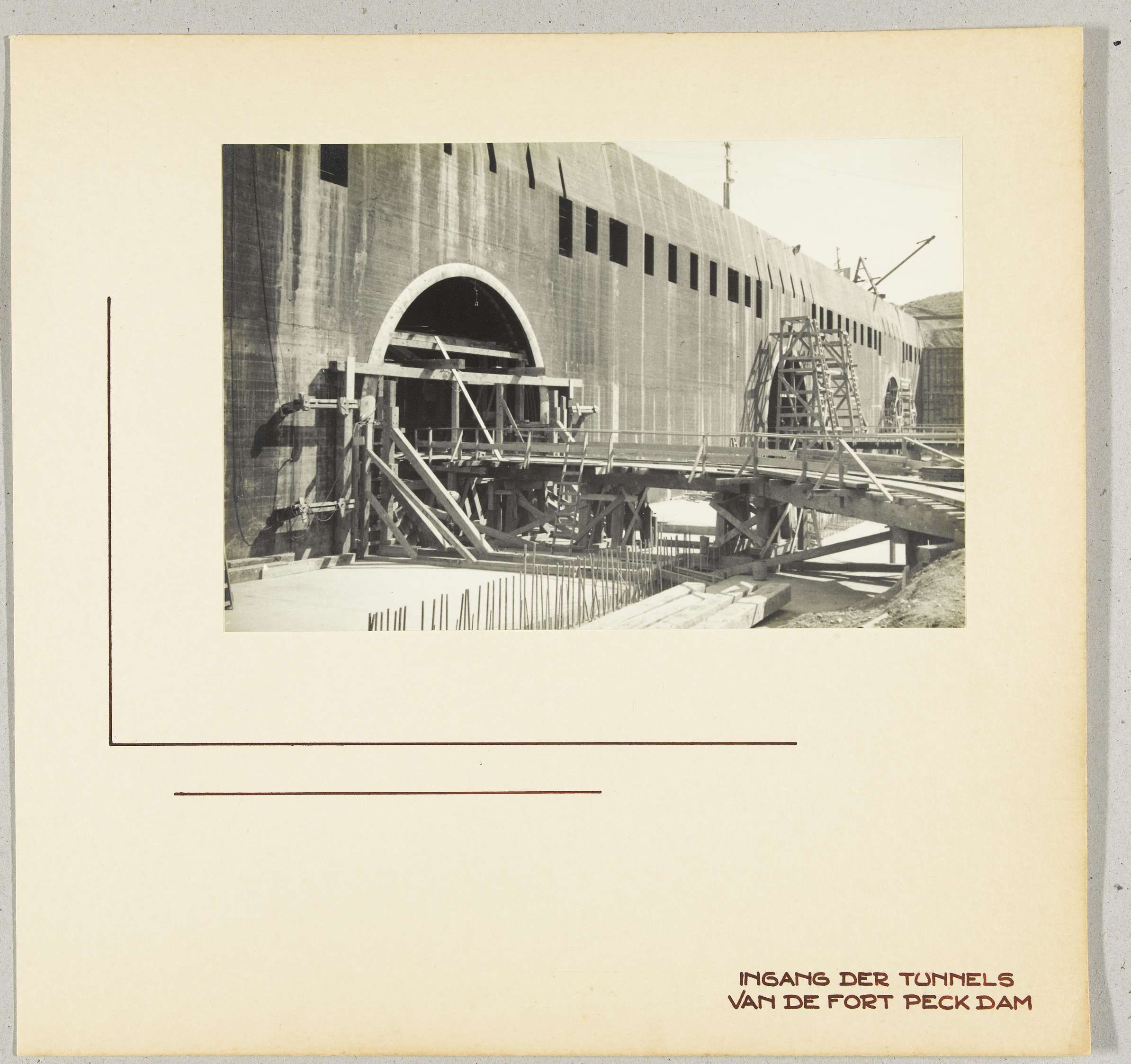 Ingang van de tunnels van Fort Peck Dam, Montana, Ve...