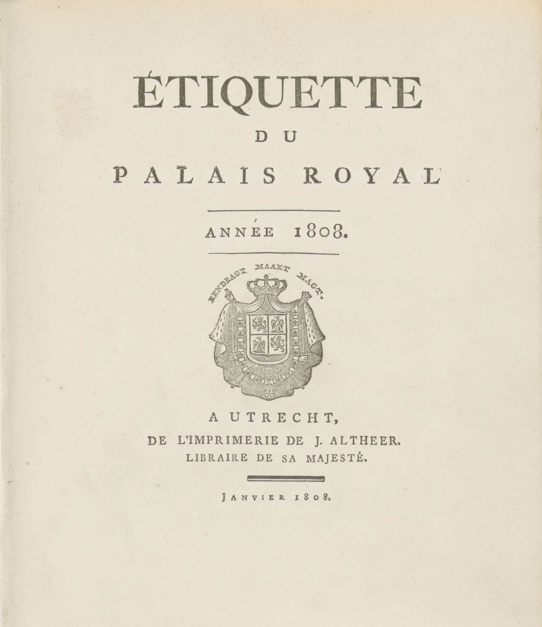 Etiquette du Palais Royal de Hollande