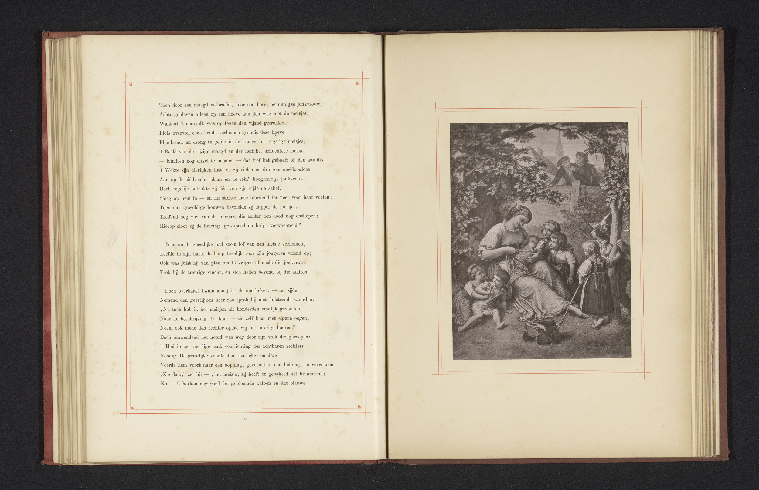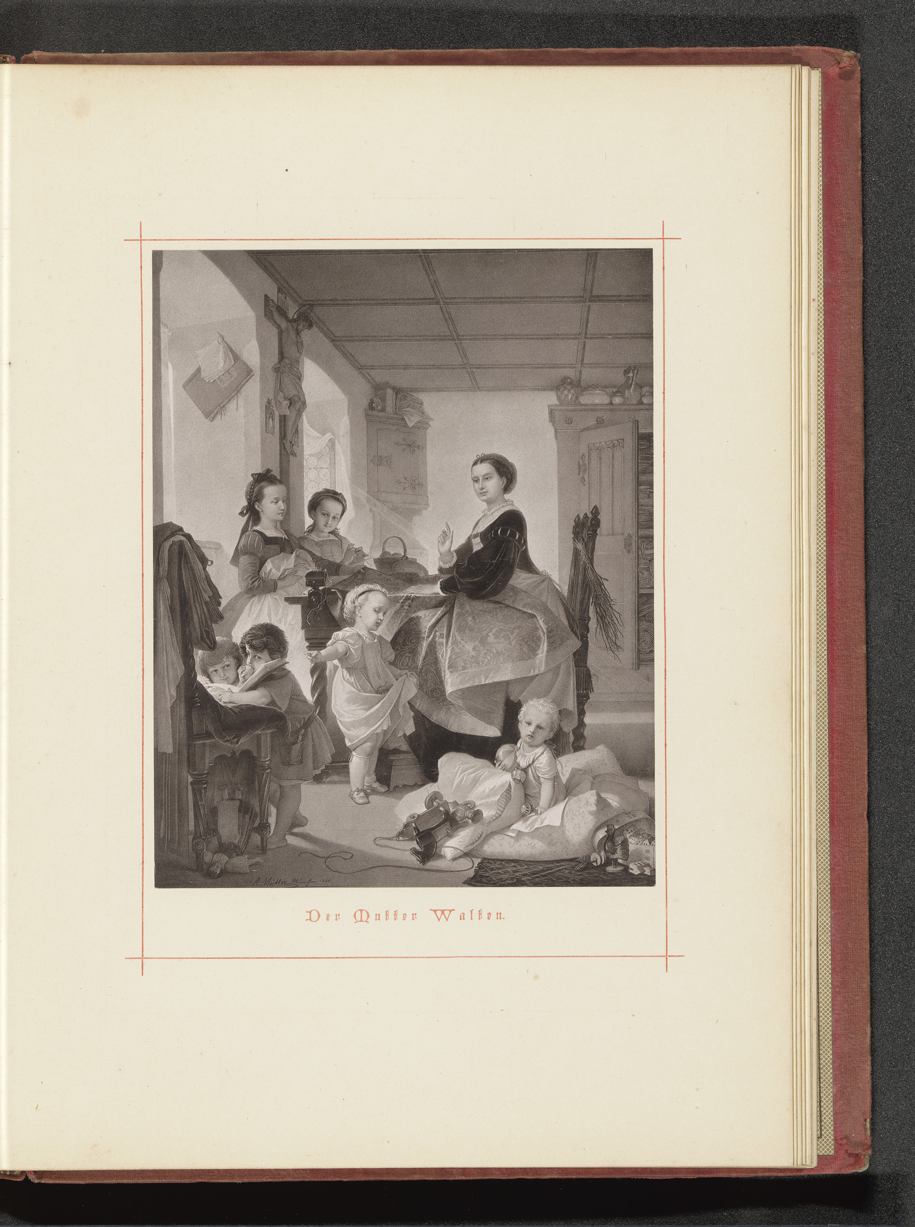 Fotoreproductie van een tekening van een gezin dat v...