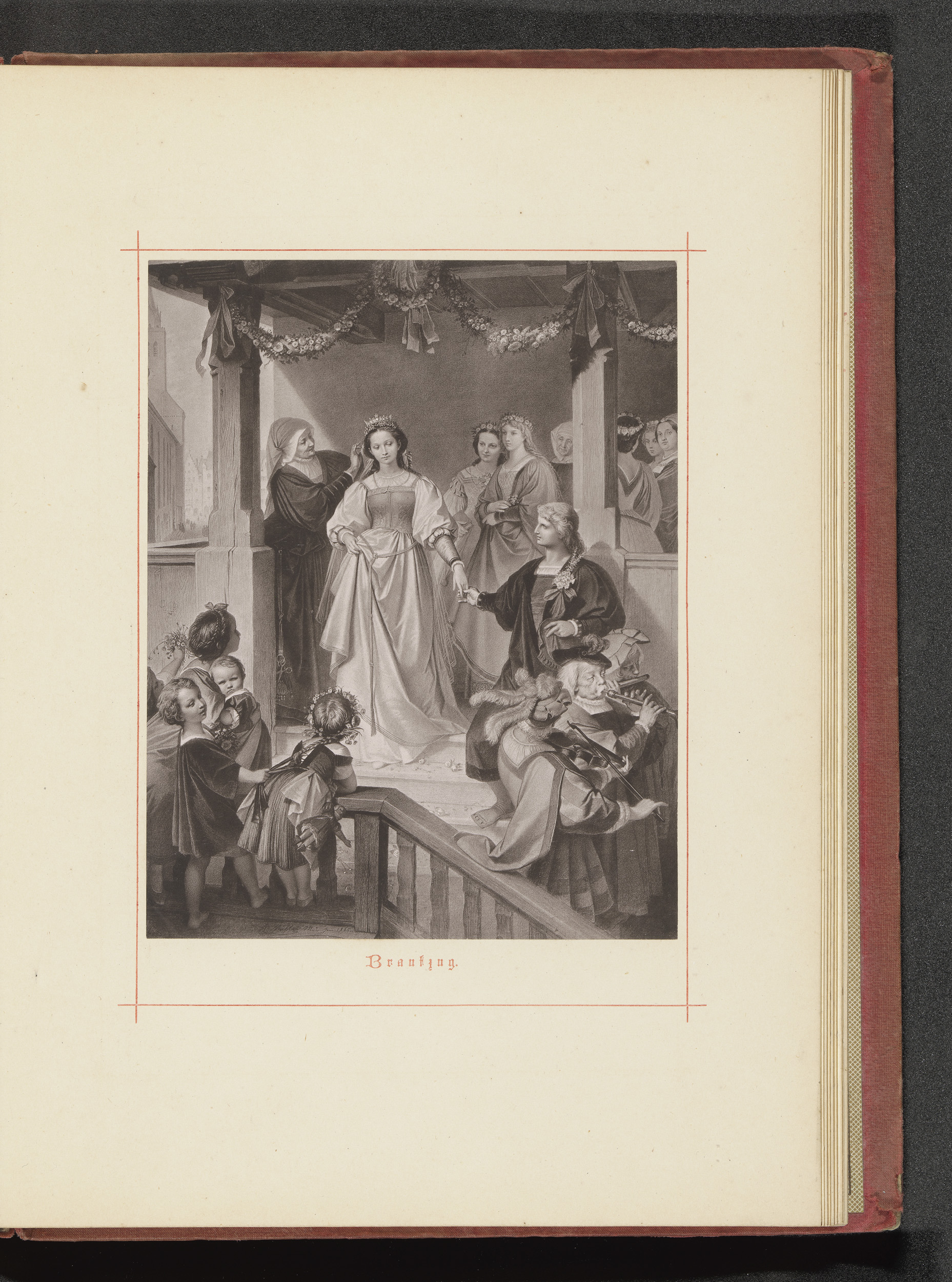 Fotoreproductie van een tekening van een bruid die w...