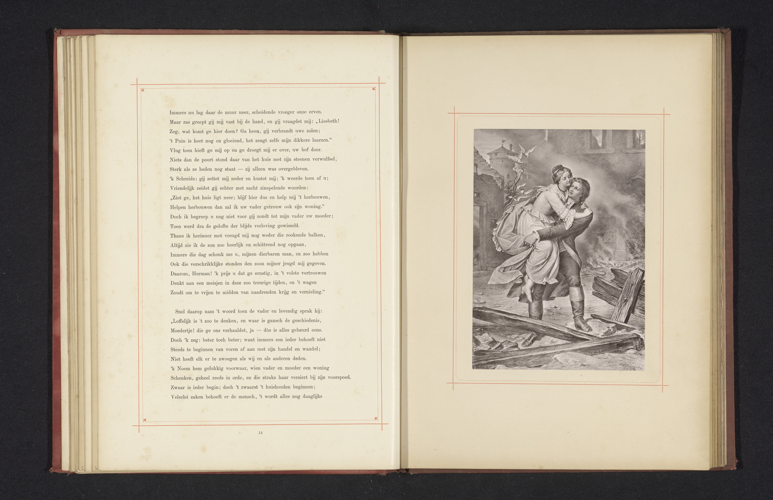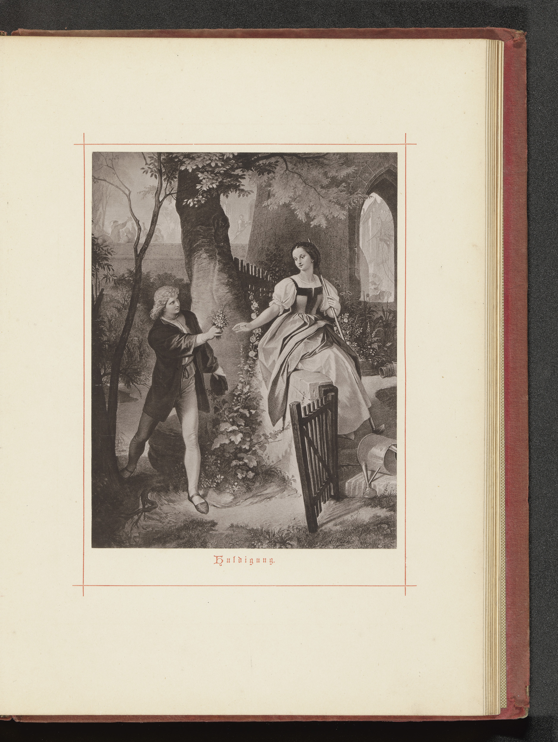 Fotoreproductie van een tekening van een verliefd pa...