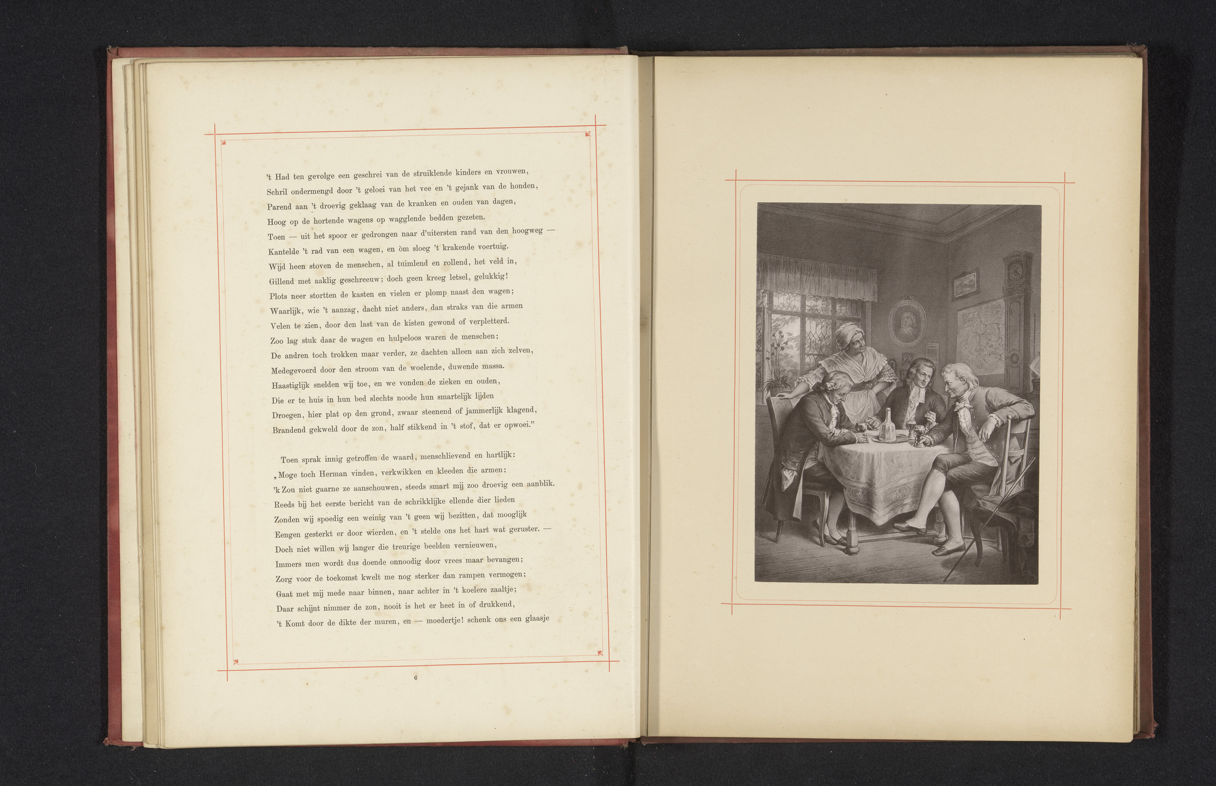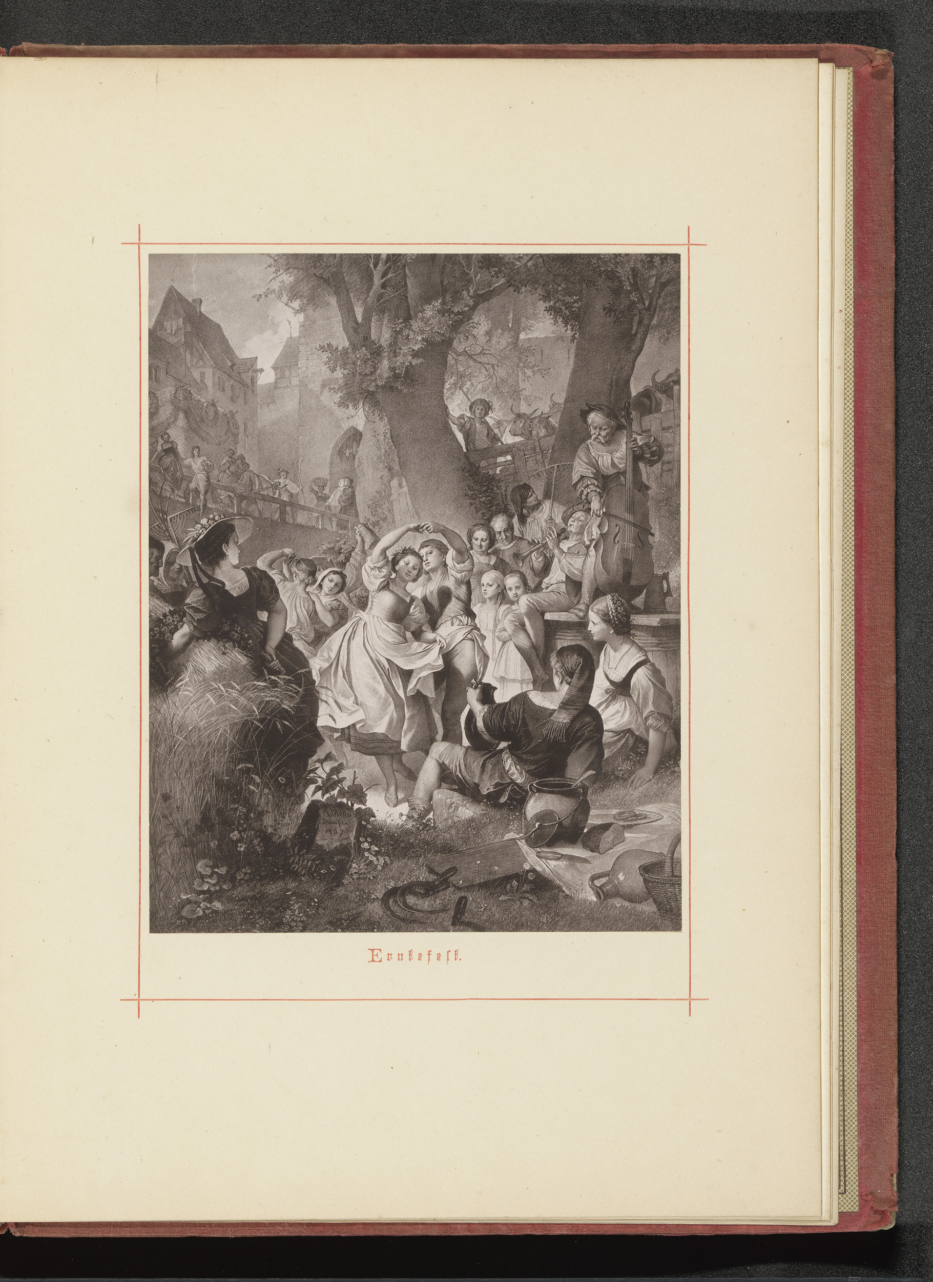 Fotoreproductie van een tekening van een groep feest...