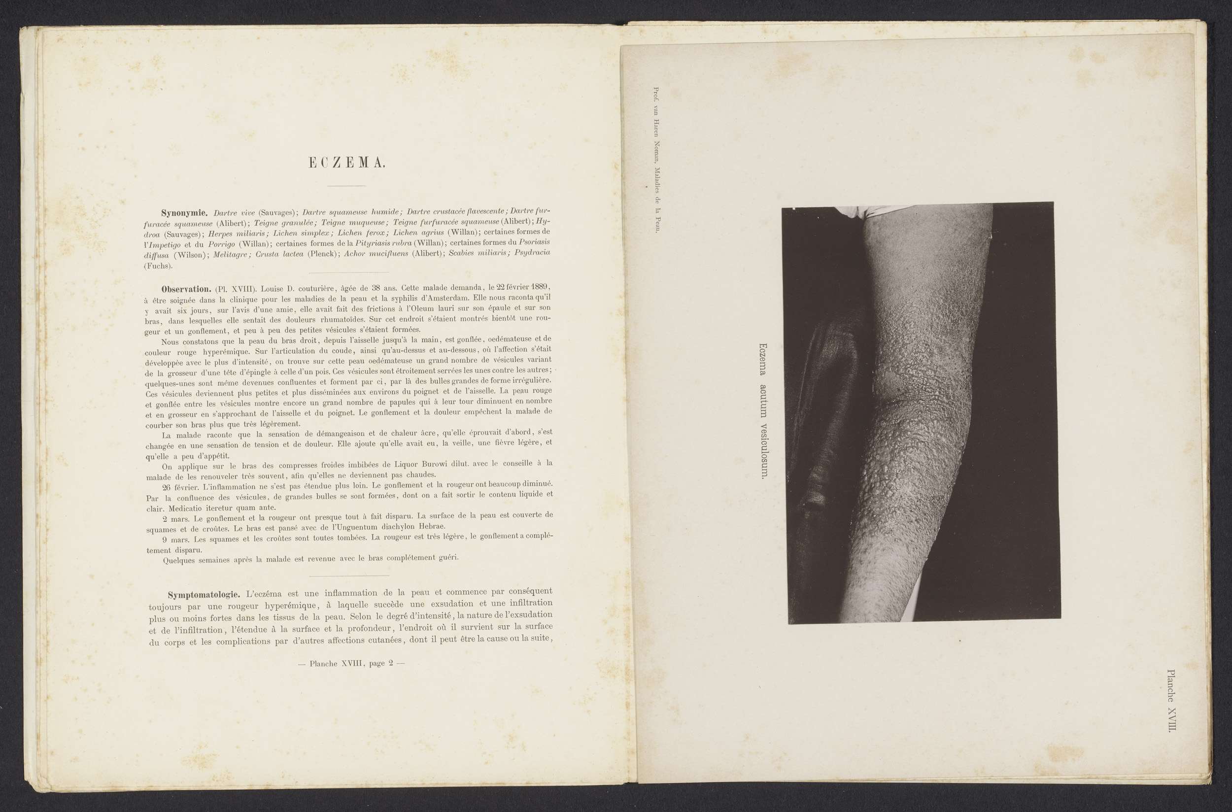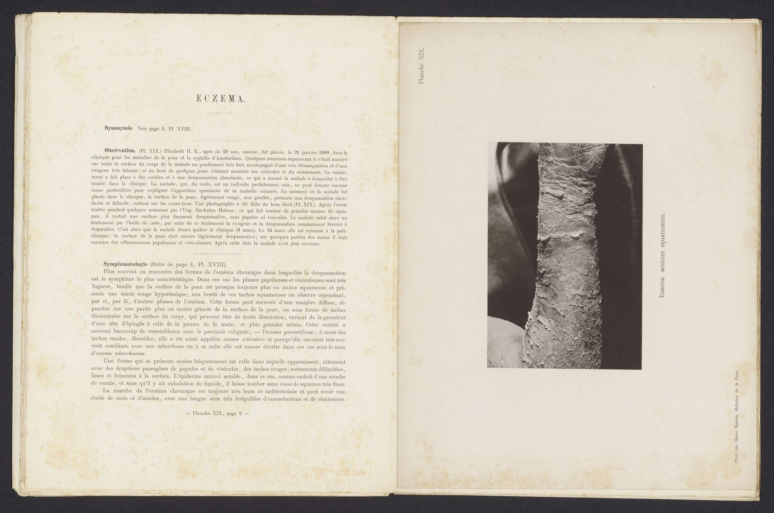 Patiënt lijdend aan de huidziekte 'eczema acutum squ...
