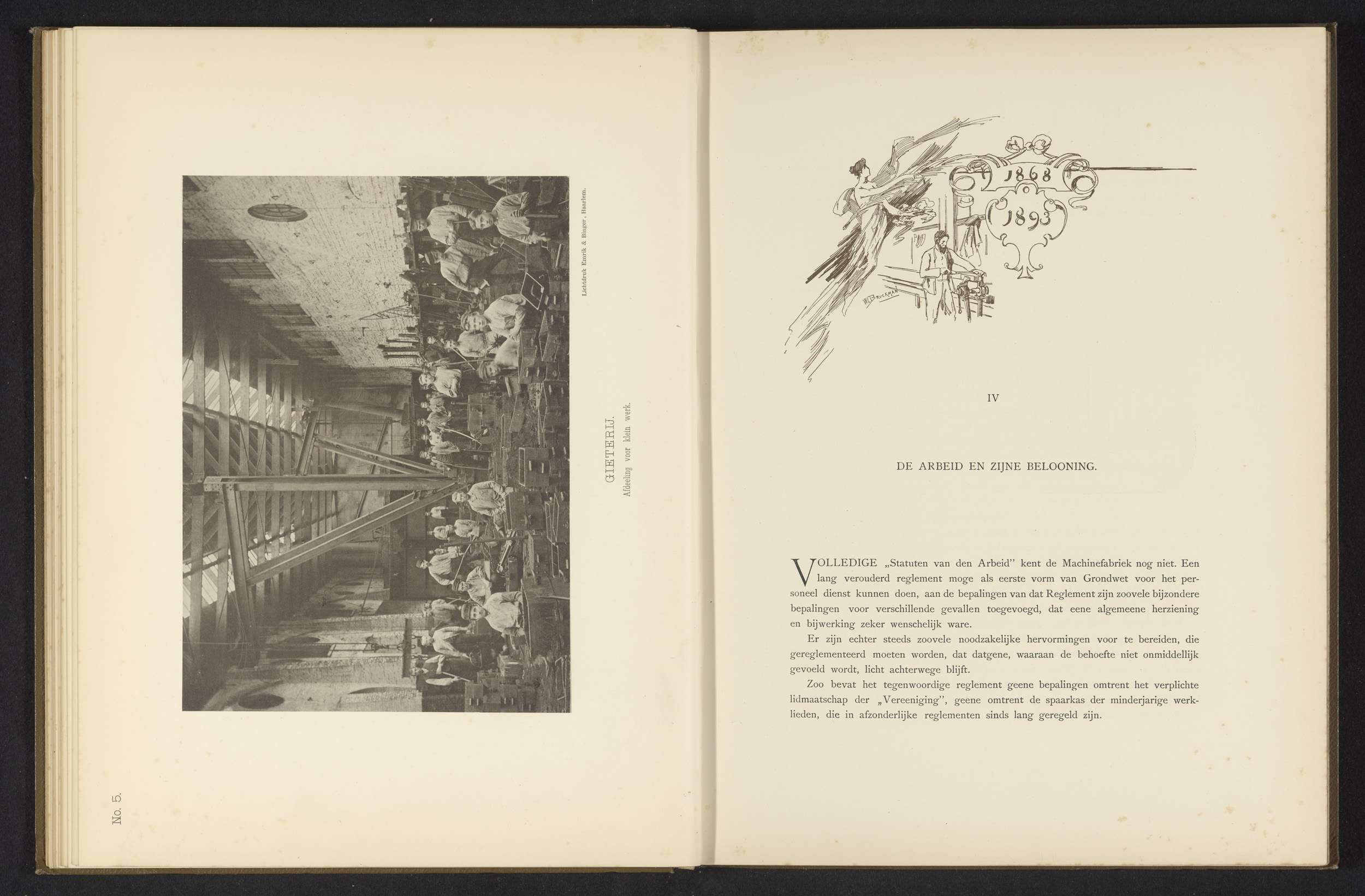 Interieur met werknemers van de machinefabriek van G...