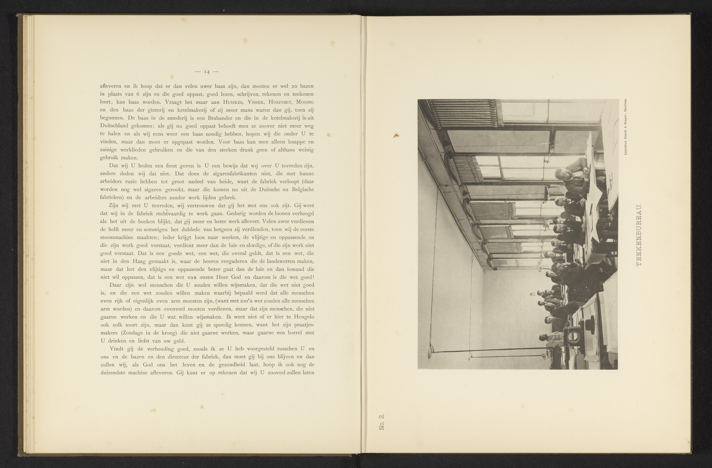 Werknemers in het tekenbureau van de machinefabriek ...