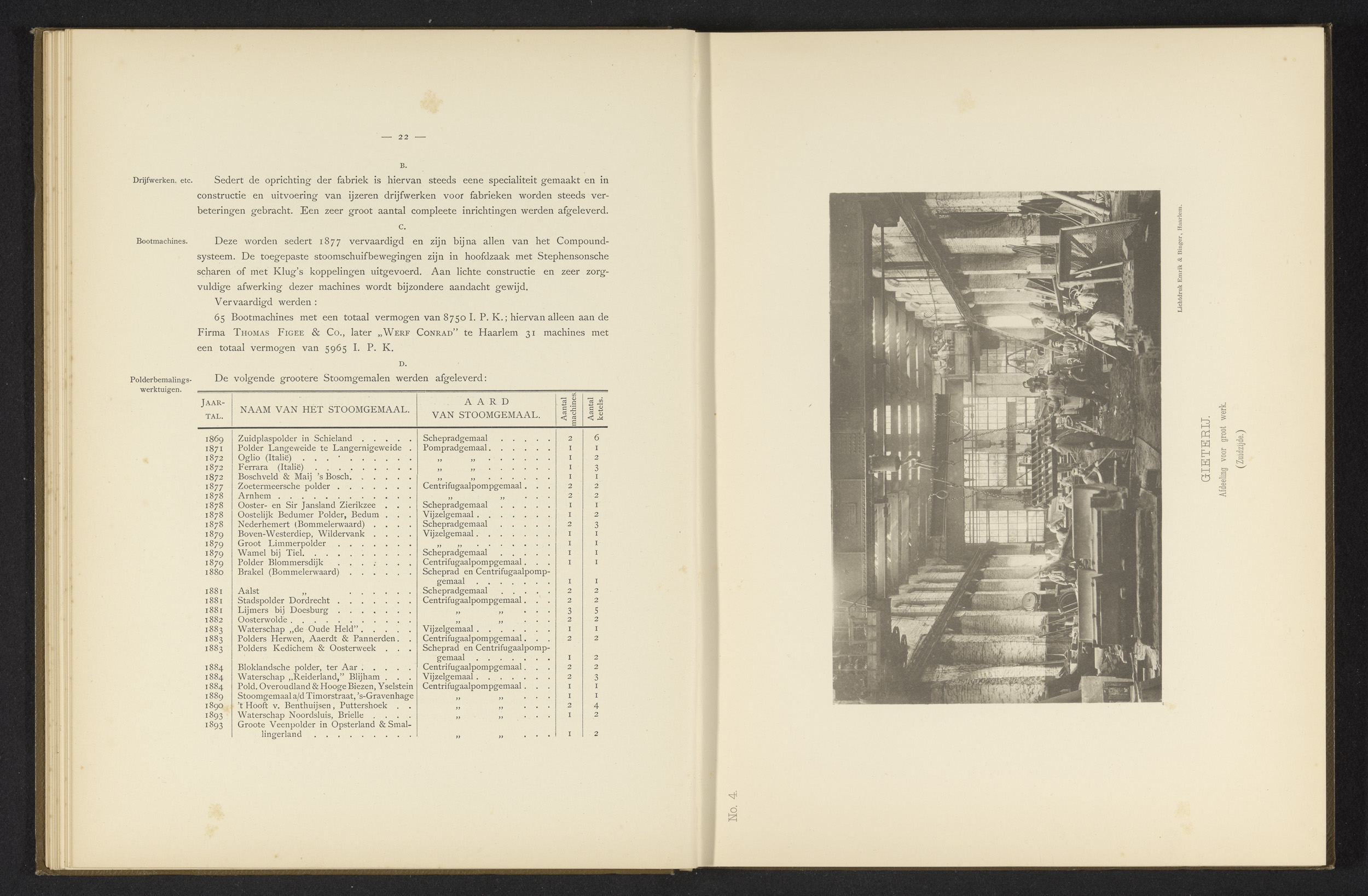 Gezicht op stoomketels bij de machinefabriek van Geb...