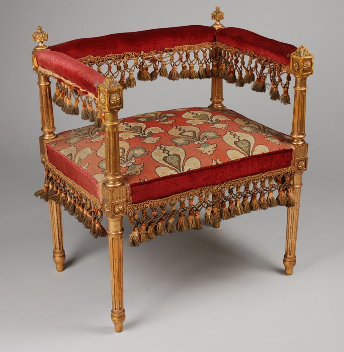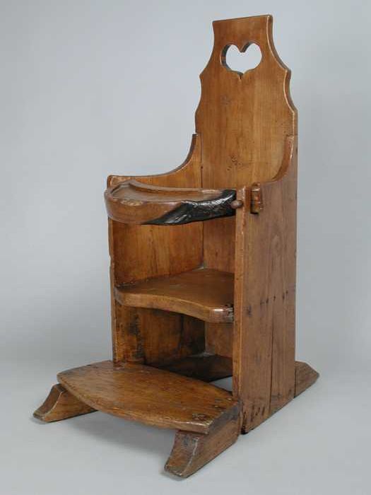 Kinderstoel of poppenstoel op sledepoten, voetensteu...