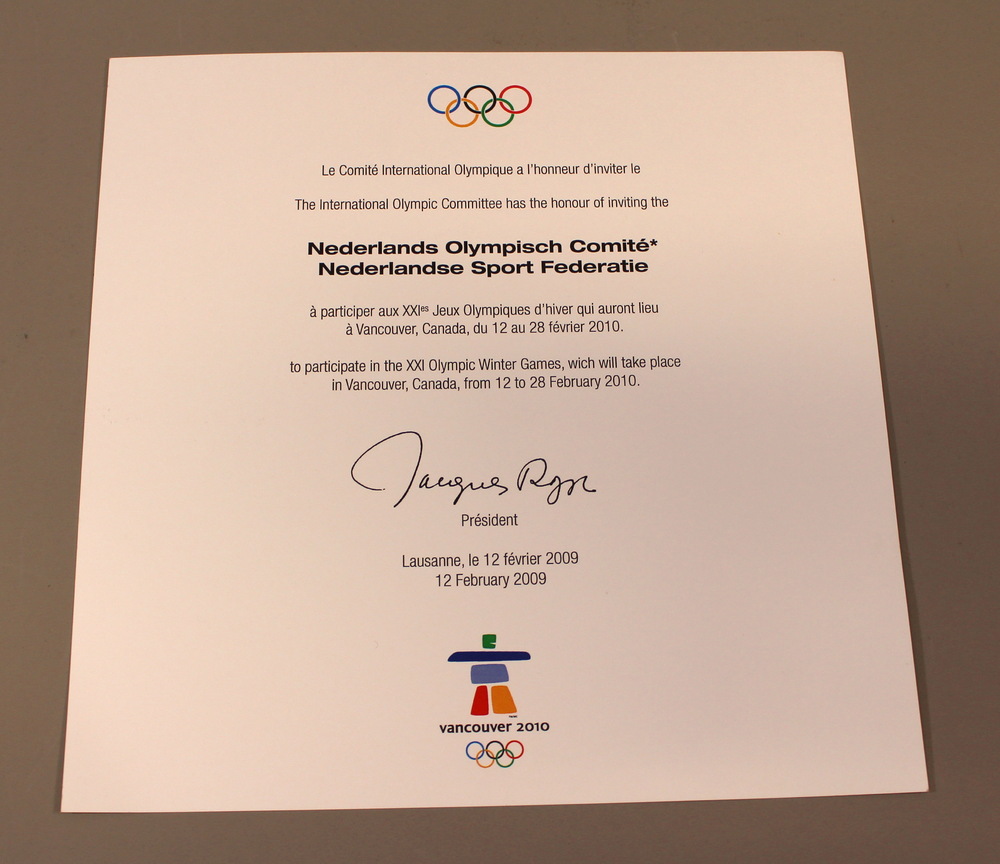 Uitnodiging aan NOC*NSF voor de Olympische Winterspe...