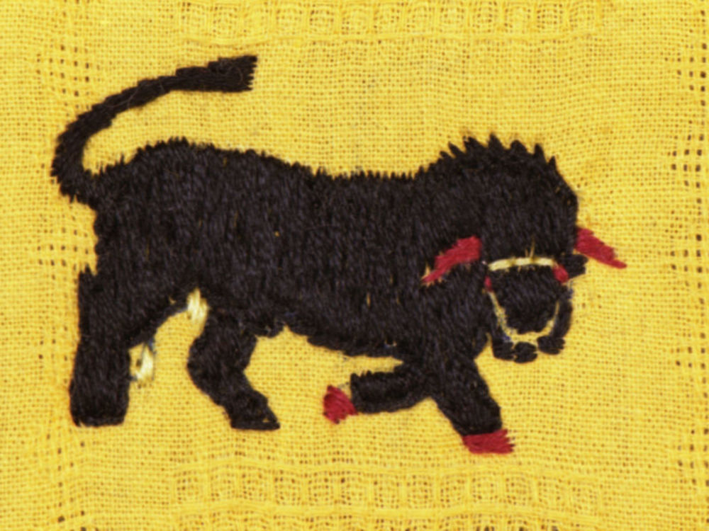 Een schildvormig insigne van de NSB, met de kleuren ...