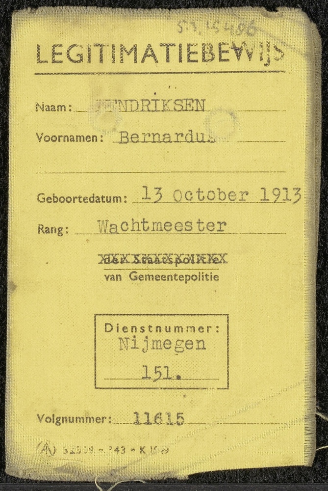 Legitimatiebewijs op naam van Bernardus Hendriksen