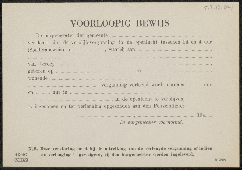 Persoonsbewijs op naam van Willem de Gooijert