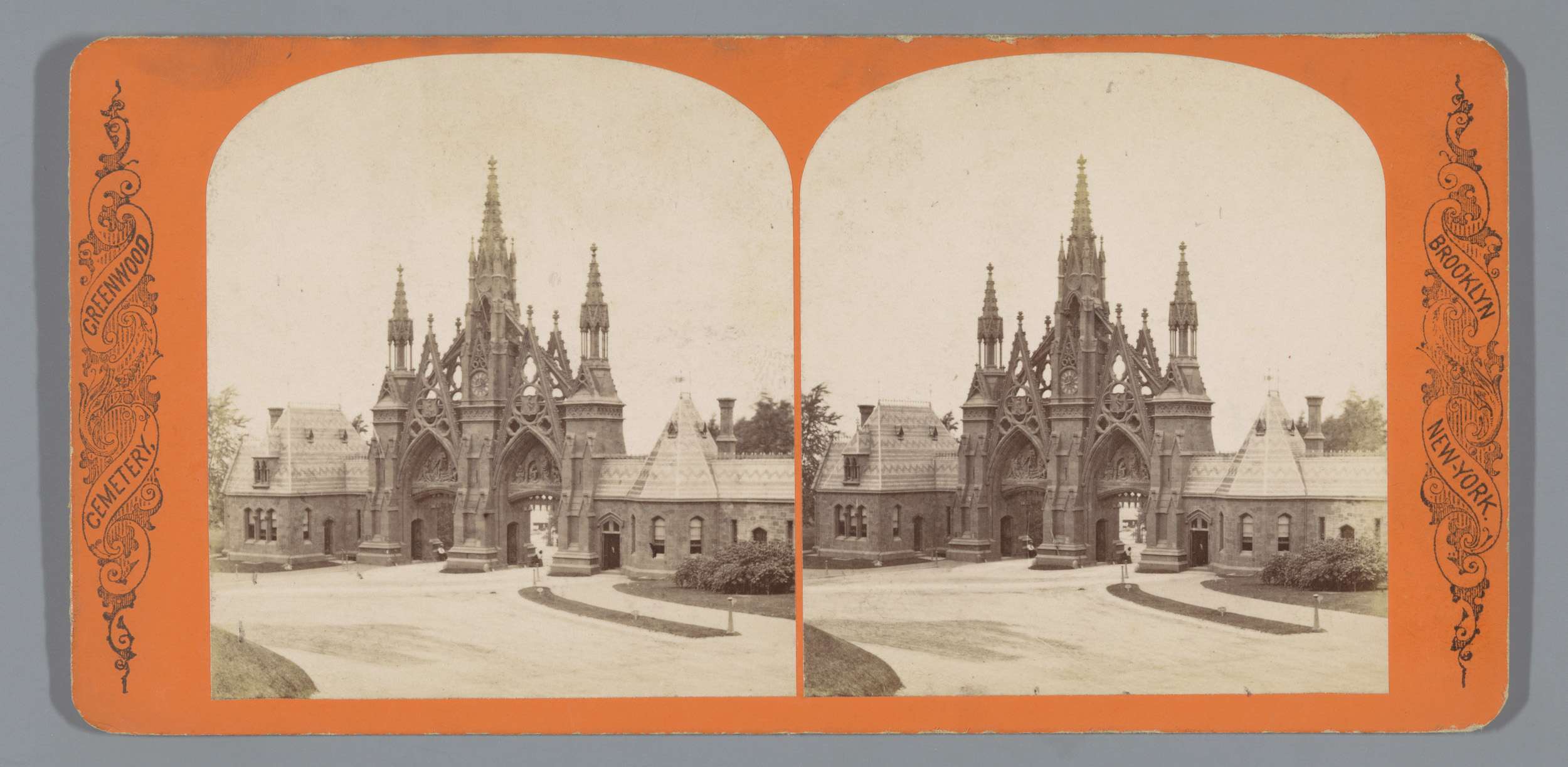 Gezicht op de entree van Greenwood Cemetery, New York