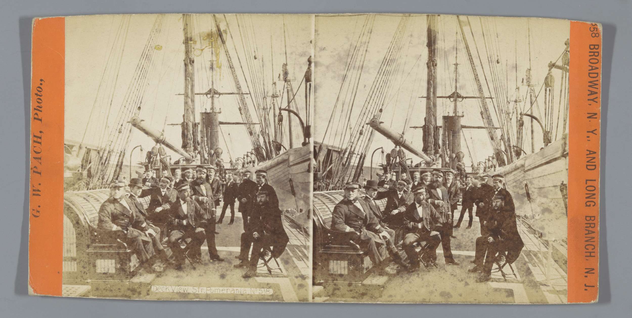 Zeelieden en passagiers aan dek van de Pomerania