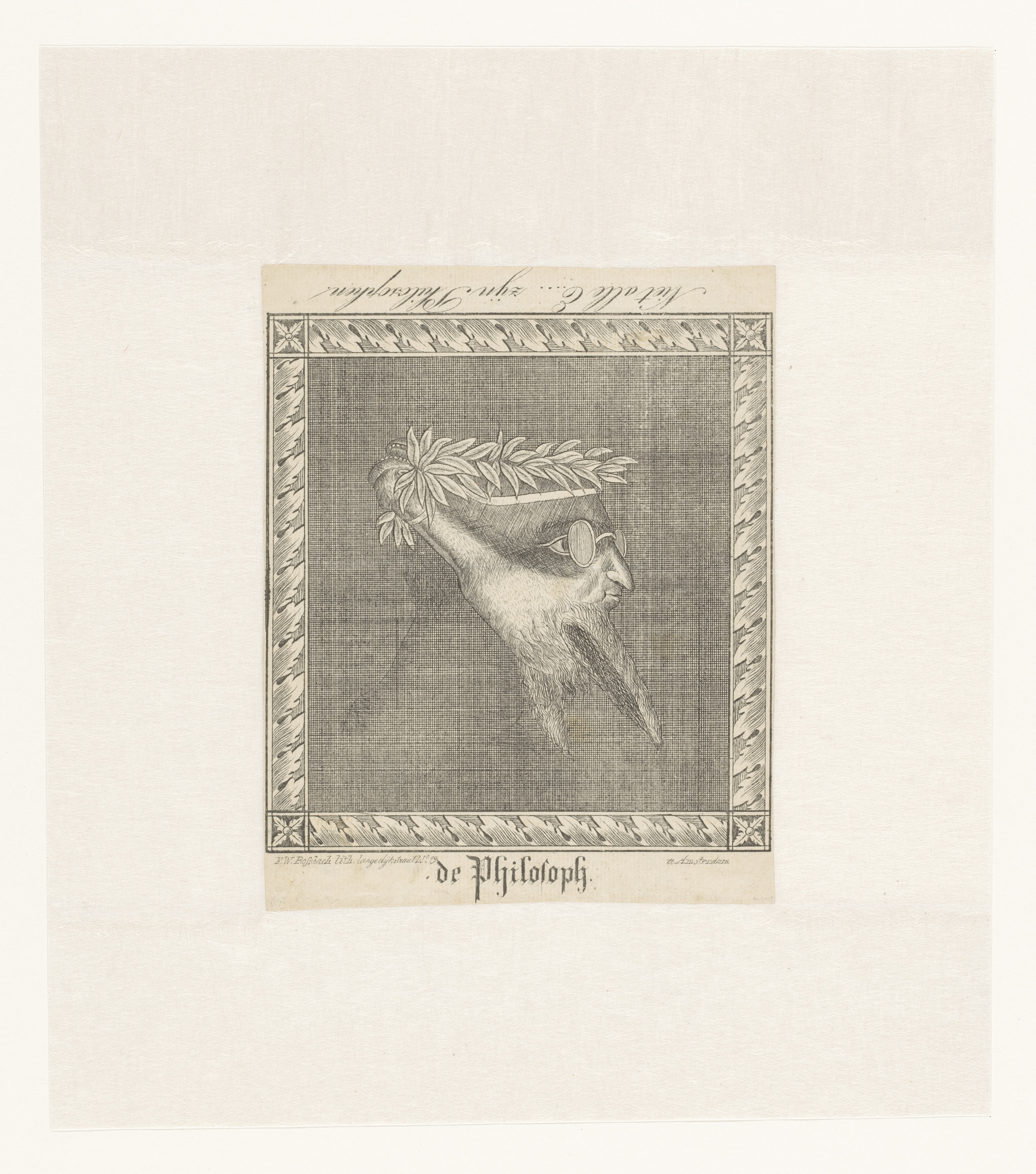 Omkeerprent met het gelauwerde hoofd van een filosoo...