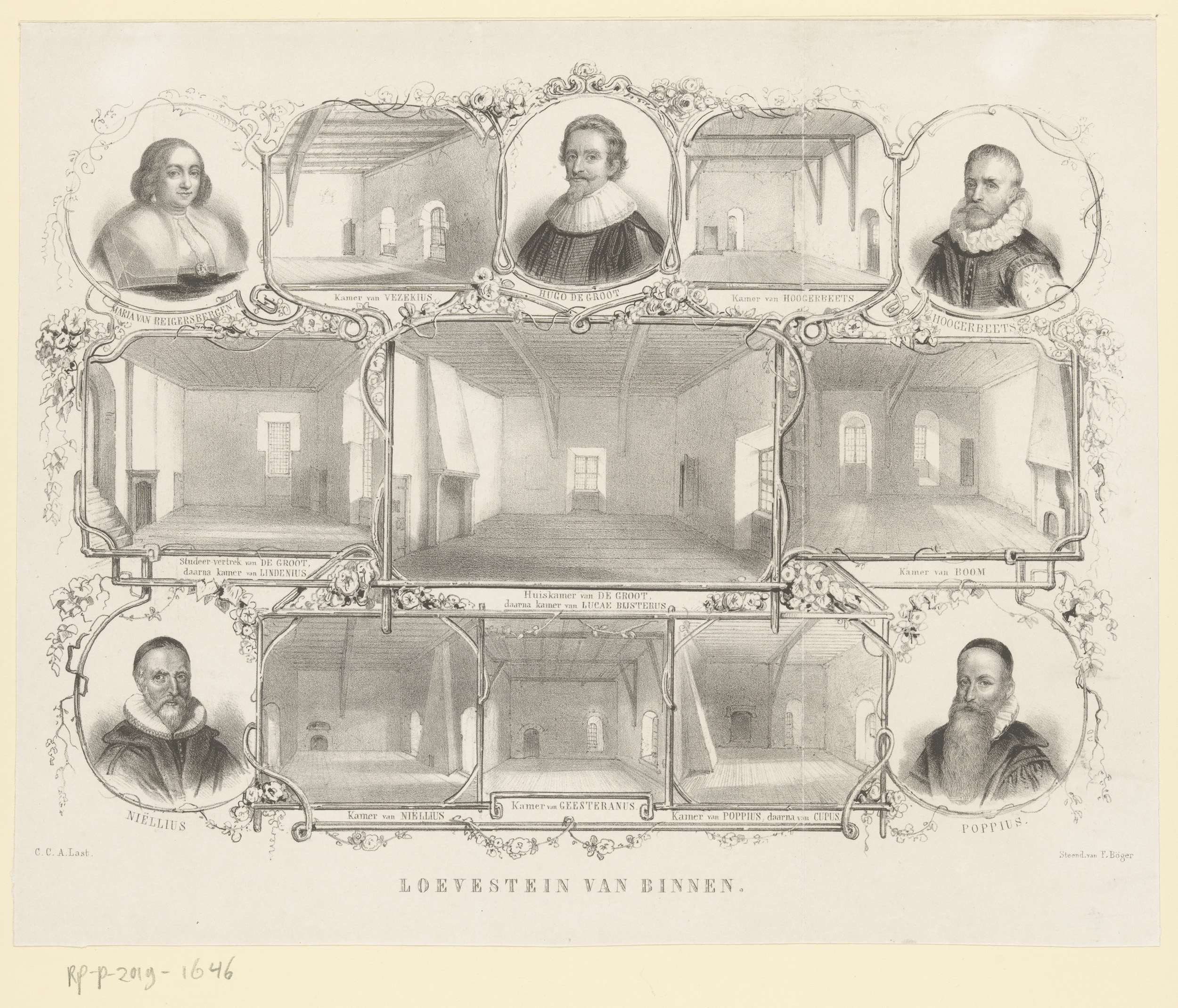 Acht kamers in Slot Loevestein en portretten van vij...