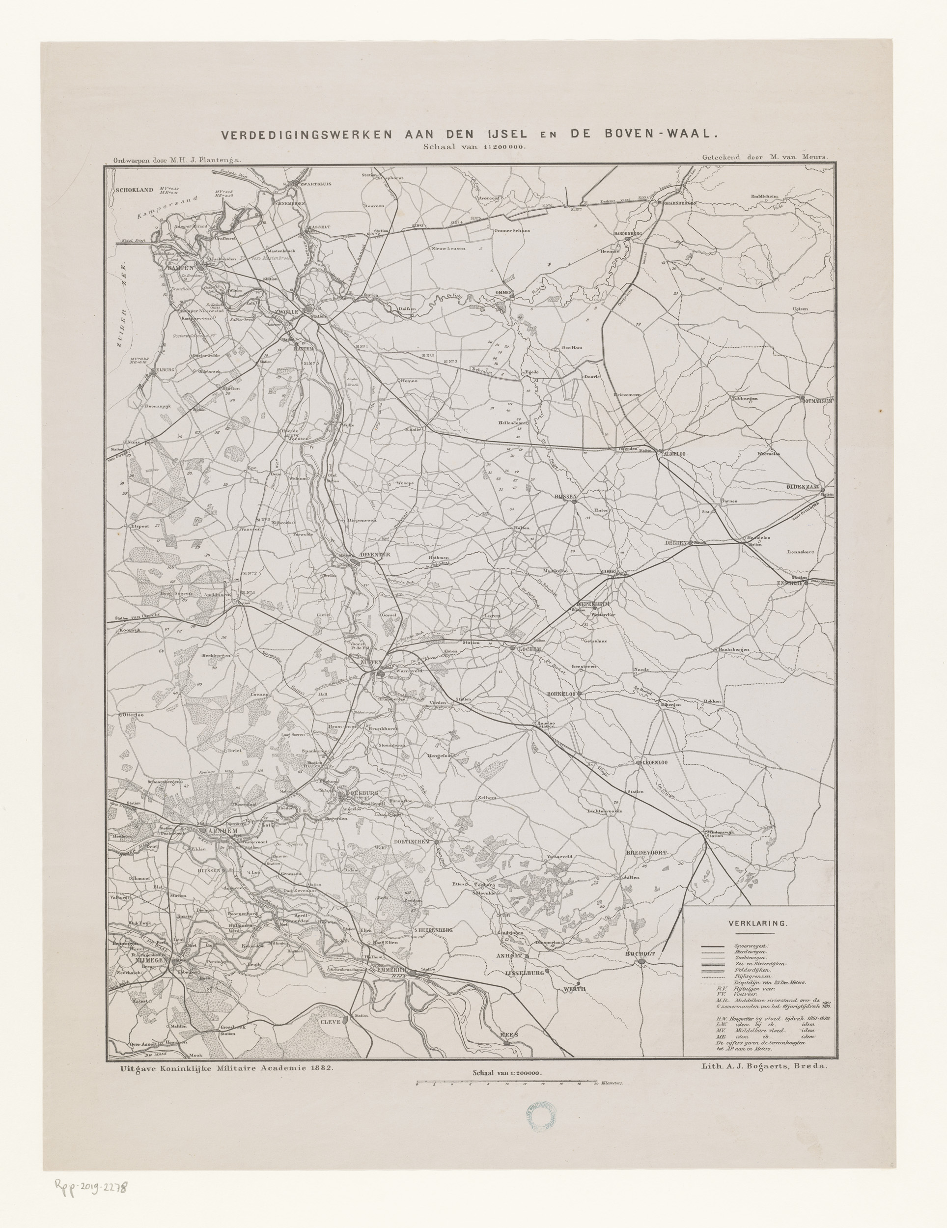 Kaart met de verdedigingswerken aan de IJssel en de ...
