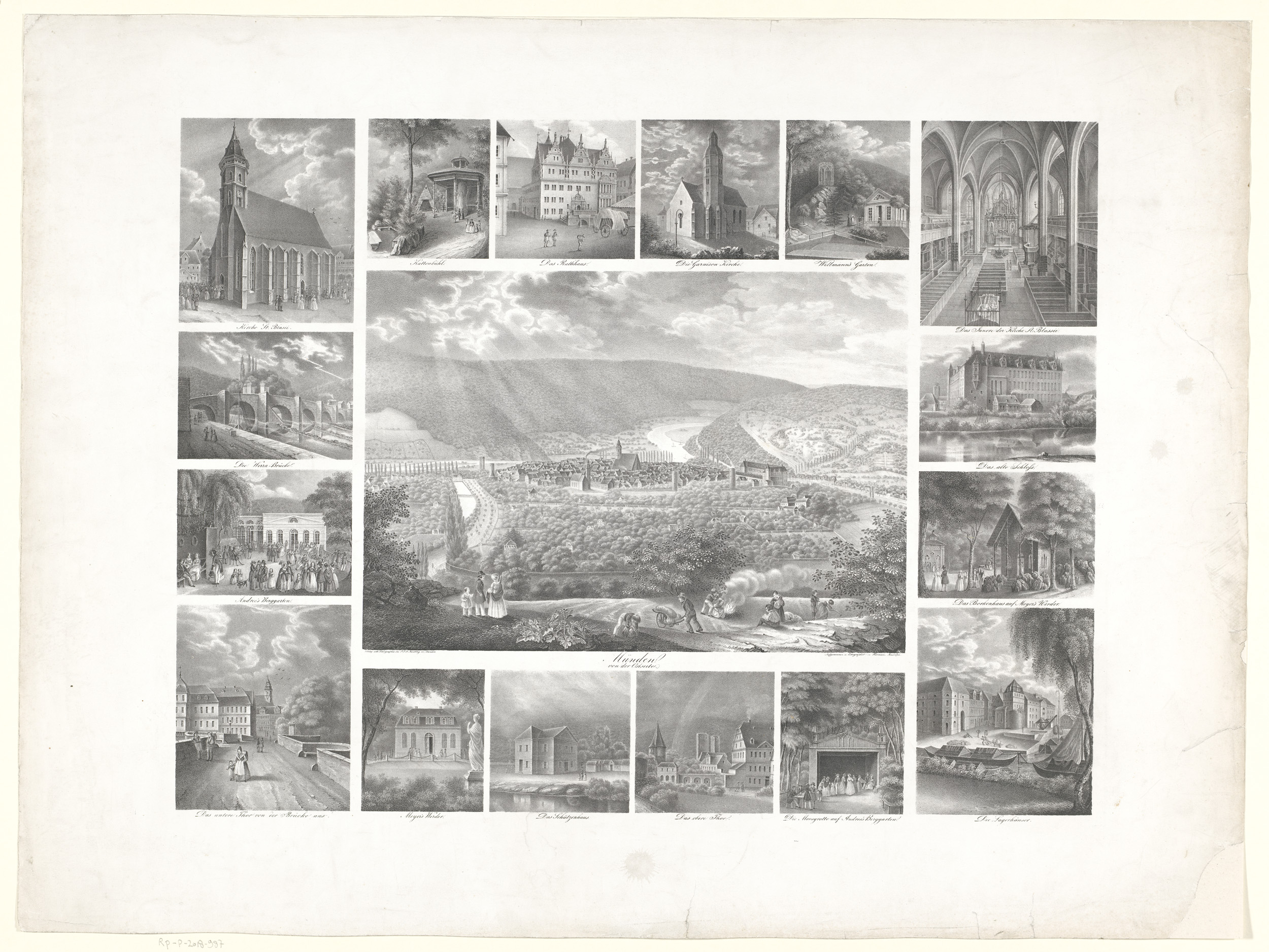 Gezicht op Hannoversch Münden met daaromheen gezicht...
