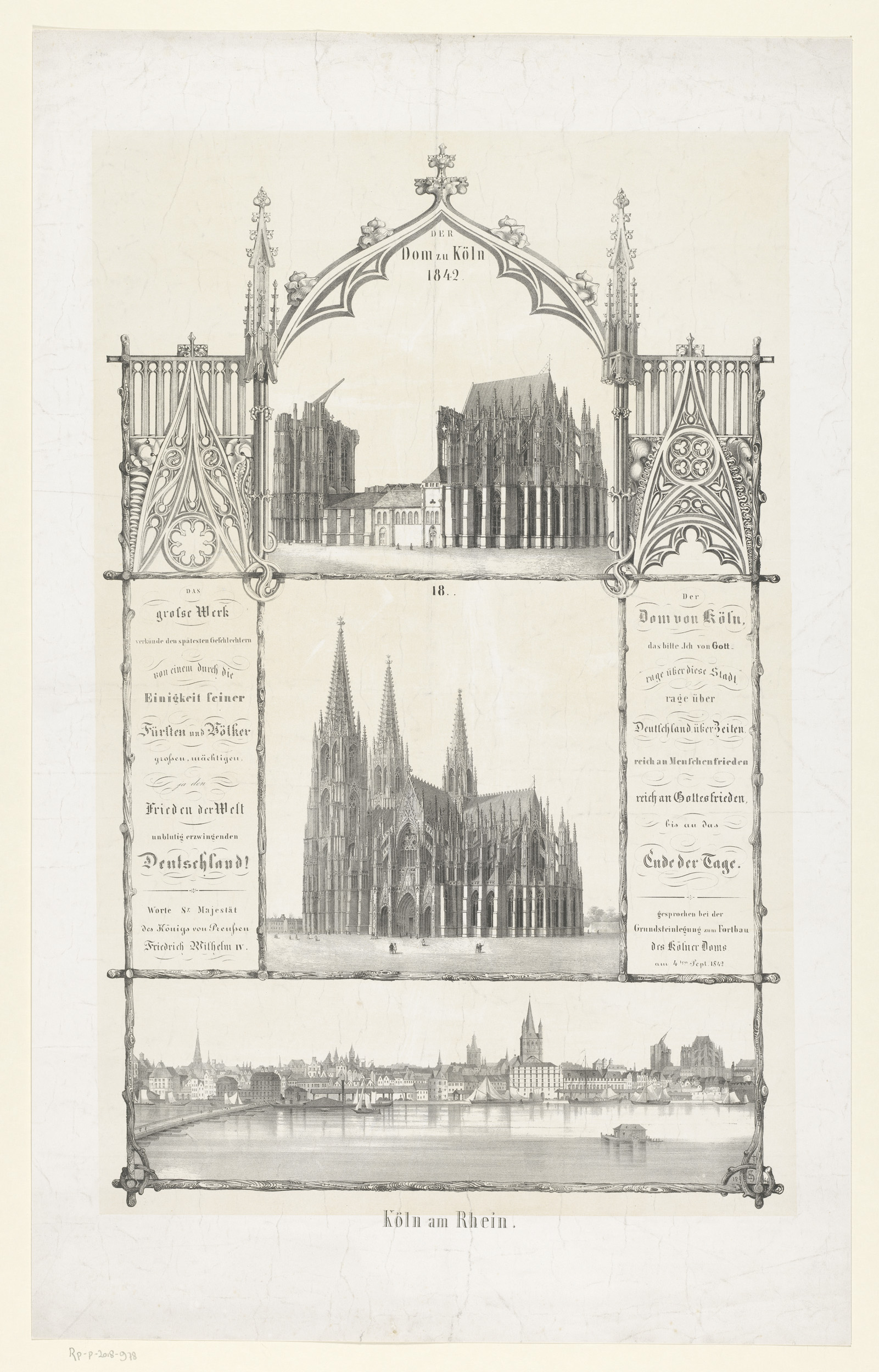 Gezicht op de Dom van Keulen in aanbouw, voltooid en...