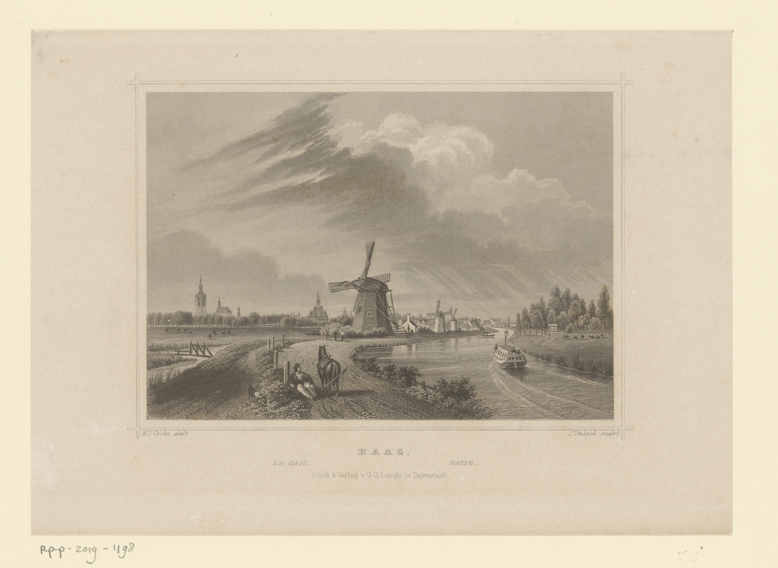 Landschap met molens en op de achtergrond Den Haag