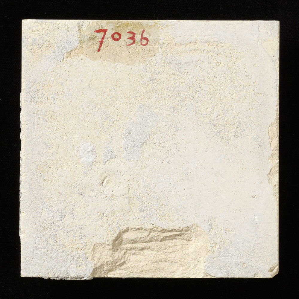 Tegel in tinglazuur, voorstellende pluimbal, ca. 187...