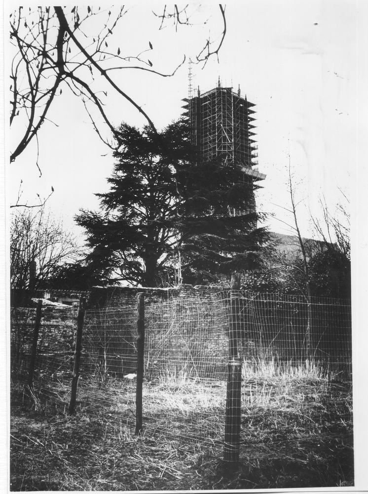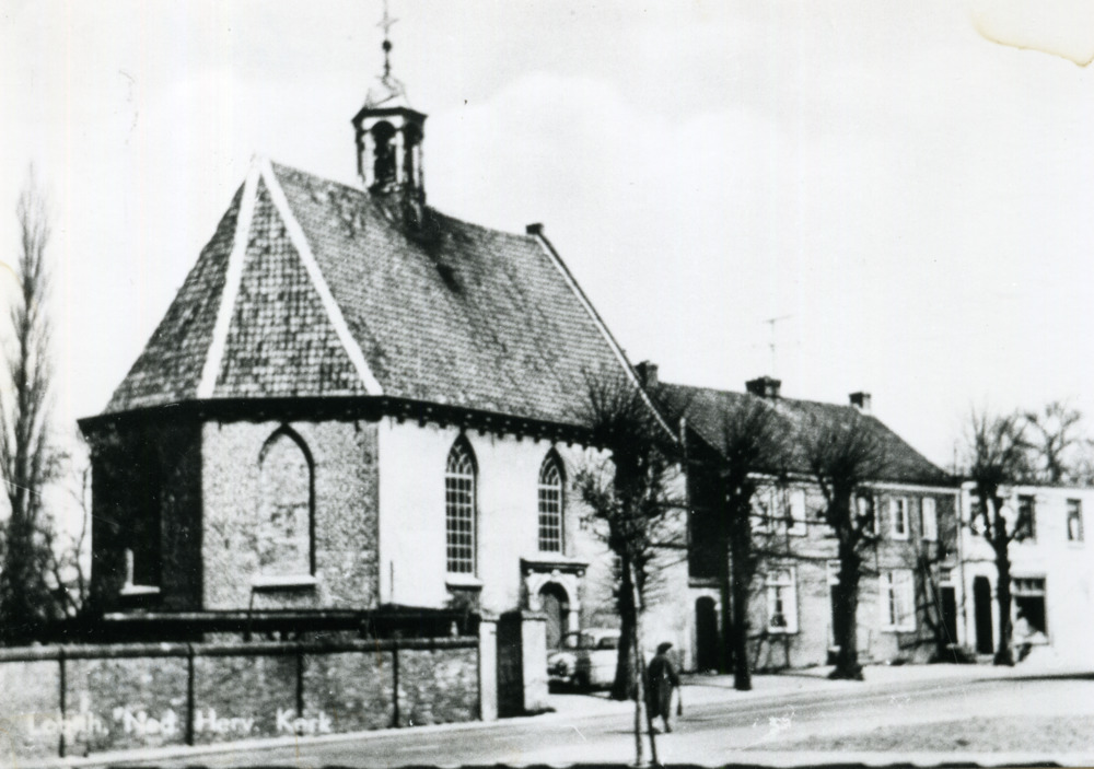 Zwart-wit foto van de protestantse kerk te Lobith ca...