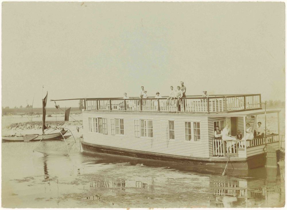 Foto, voorstellende de huisboot van de fam. Dresselh...