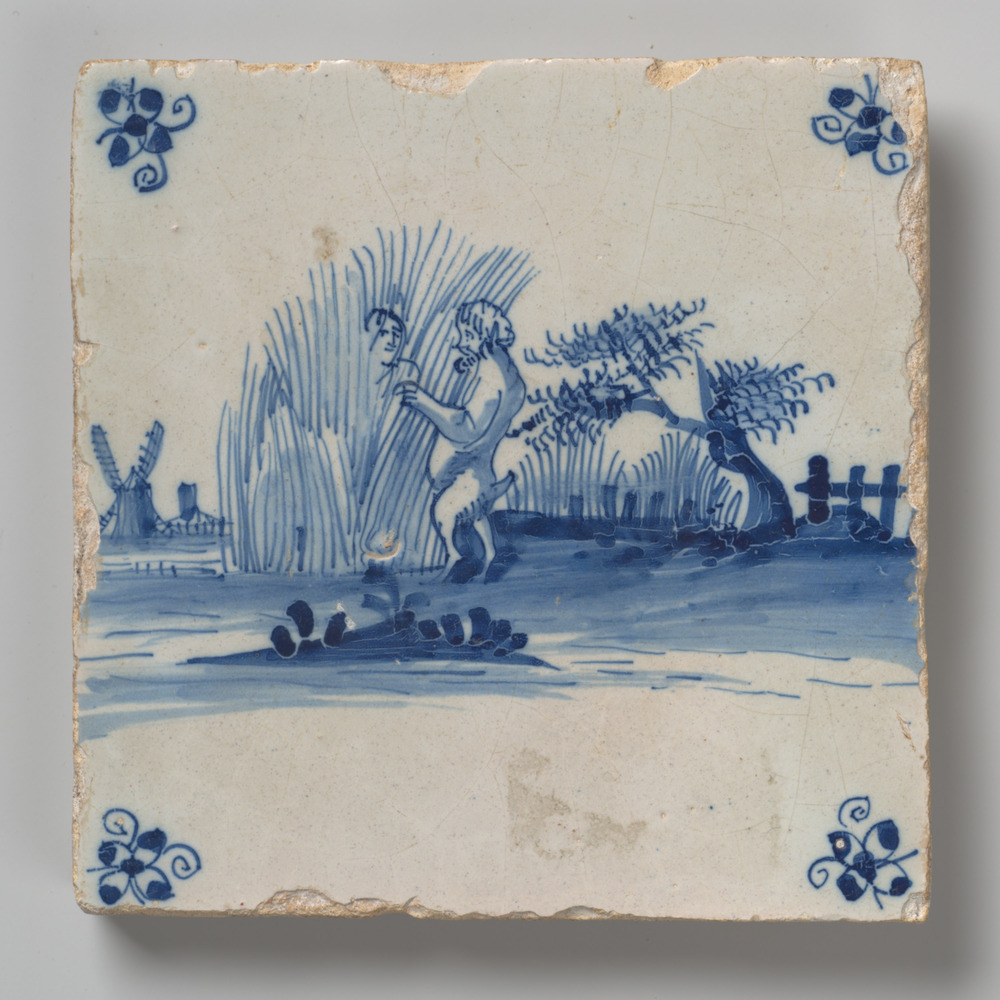 tegel van aardewerk met tinglazuur, voorstellende: P...